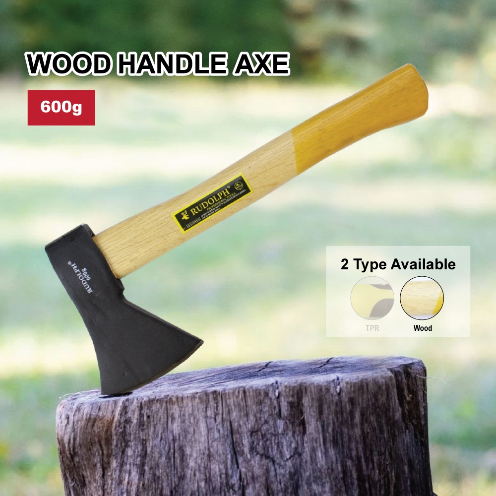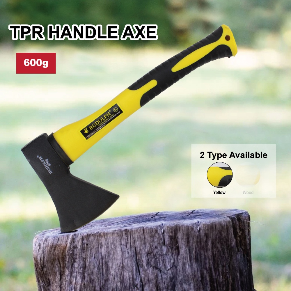 Axe 600g Wood / TPR Handle Heavy Duty Thermoplastic Rubber Wood Chopping Tool Gardening Kapak