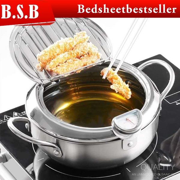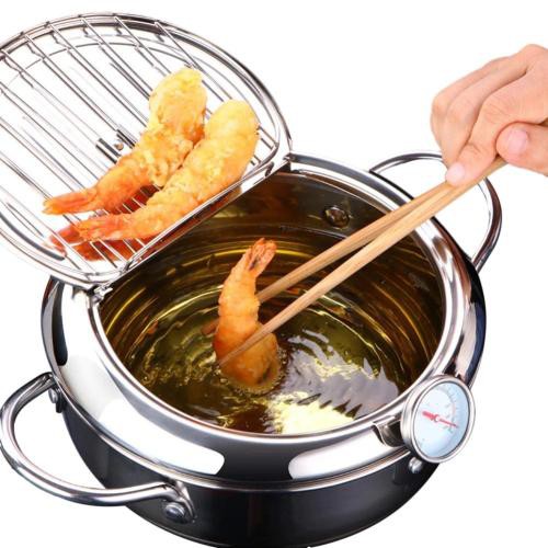 B.S.B Tempura Fryer Japanese Deep Fryer Cooker SUS 304 with Thermometer Pan Temperature Control Fried Chicken Pot