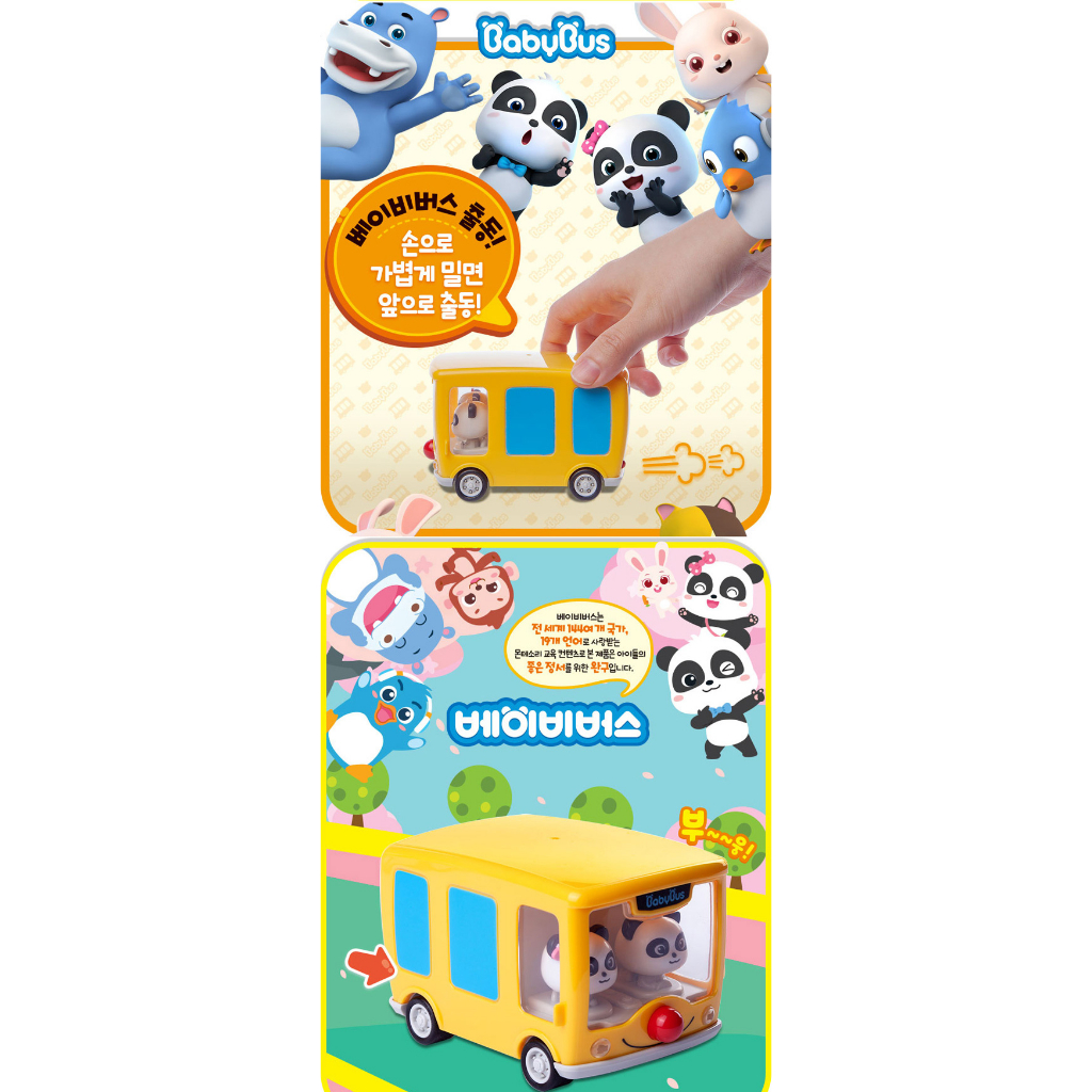 BABYBUS - Yellow Baby Bus Vehicle Car Toy Friction Gear /Baby Bus Panda Rolling Monster Minicar Toys Play Set