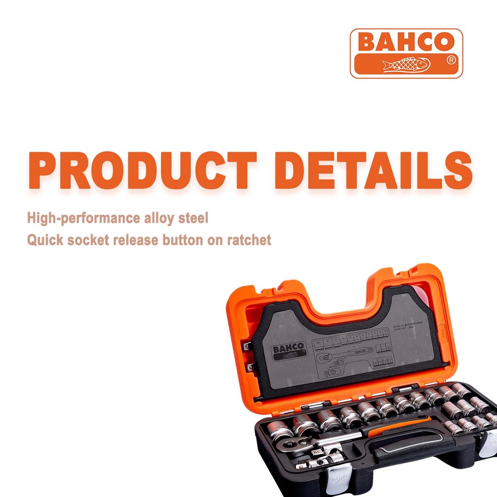 BAHCO S240 1/2" Square Drive Socket Set with Metric Hex Profile and Ratchet S 240 s240 s 240