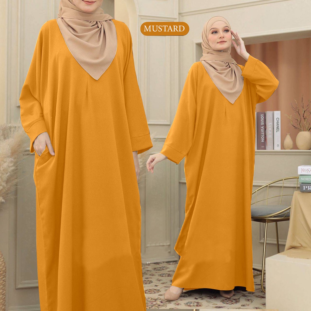 BAJU KELAWAR KAFTAN PLAIN BY ERA MAIRA VIRAL DRESS ( COMO CREPE ) KAFTAN MURAH FREE SIZE ( S to 5XL )