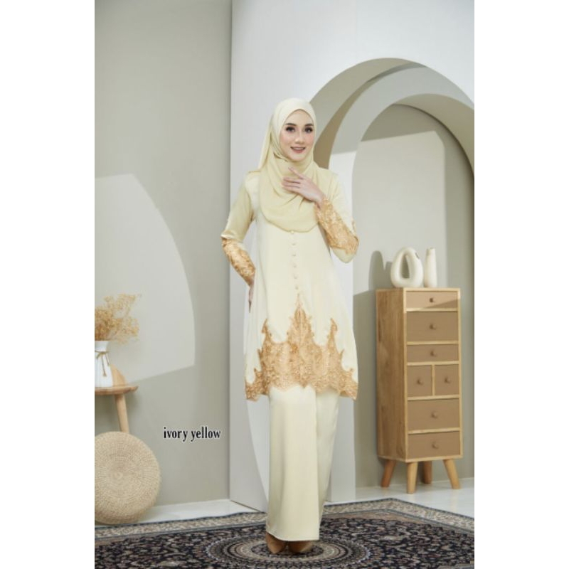 BAJU KURUNG RAYA KEBAYA LACE MODEN (IVORY YELLOW)