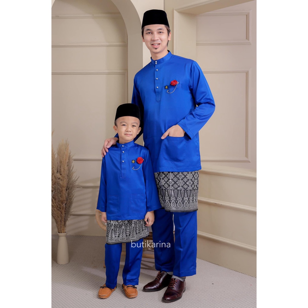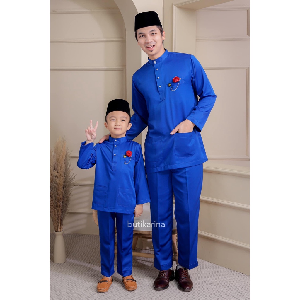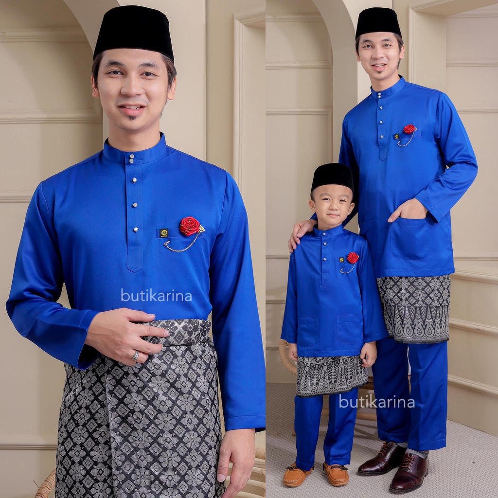 BAJU MELAYU BIRU ROYAL BLUE SET AYAH ANAK PREMIUM | BAJU MELAYU RAYA DEWASA BUDAK LELAKI SEDONDON