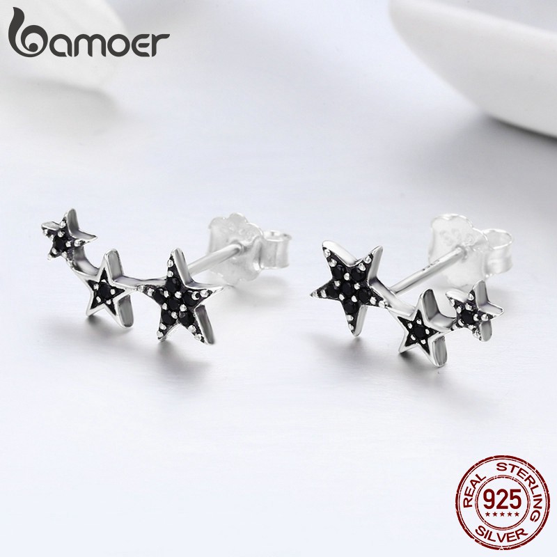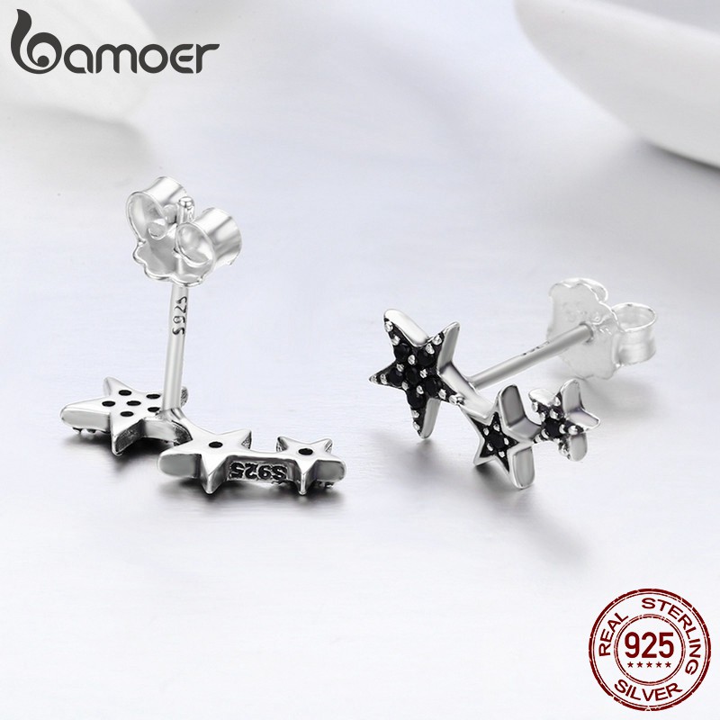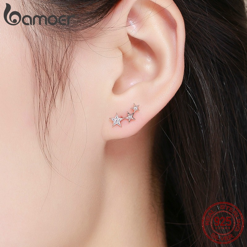 Bamoer 925 Silver Twinkle Star Rose Gold Plated Stud Earrings Cuff