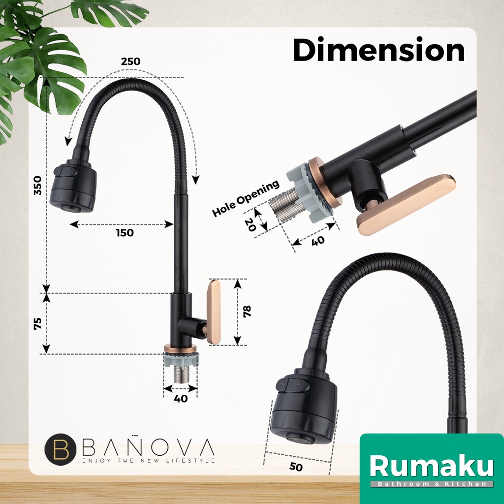 BANOVA SUS 304 Stainless Steel Kitchen Sink Tap Water Tap Paip Singki Dapur AREZZO Series BLACK ROSE GOLD