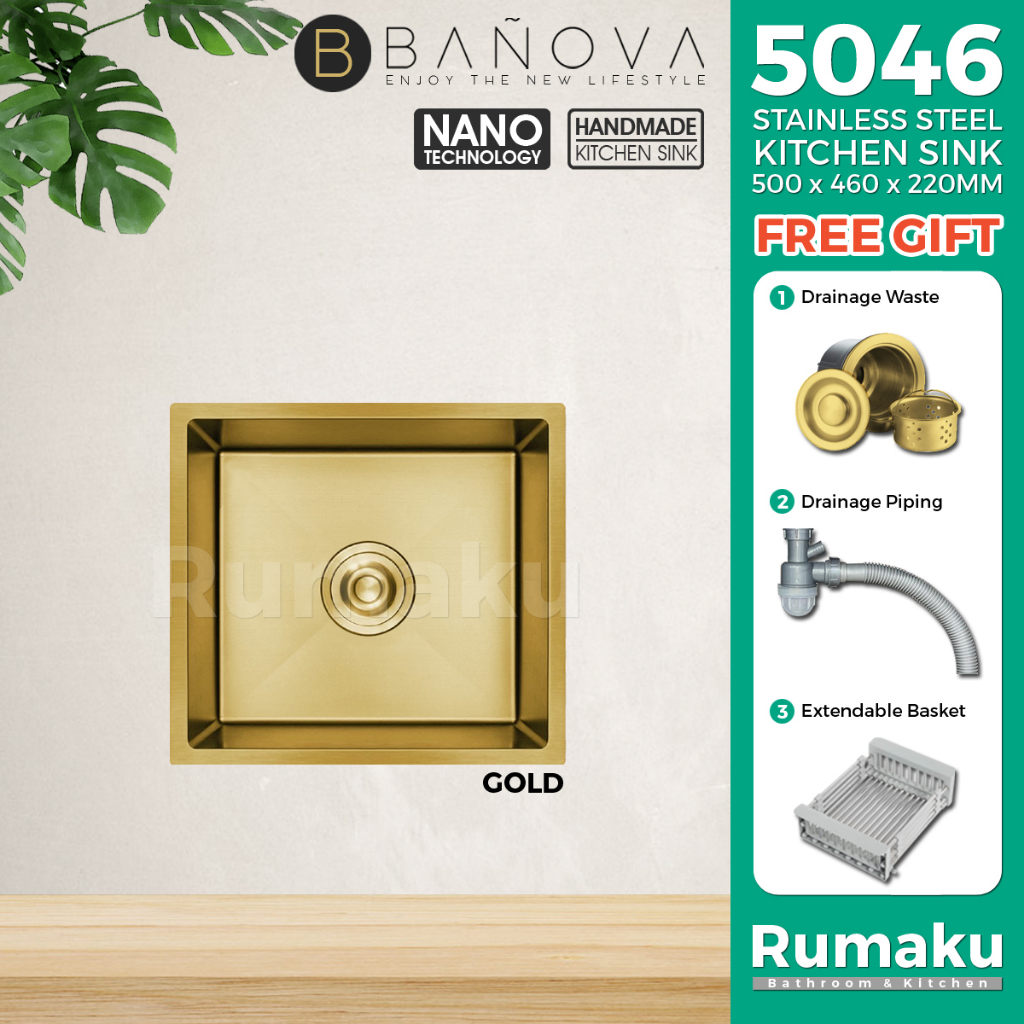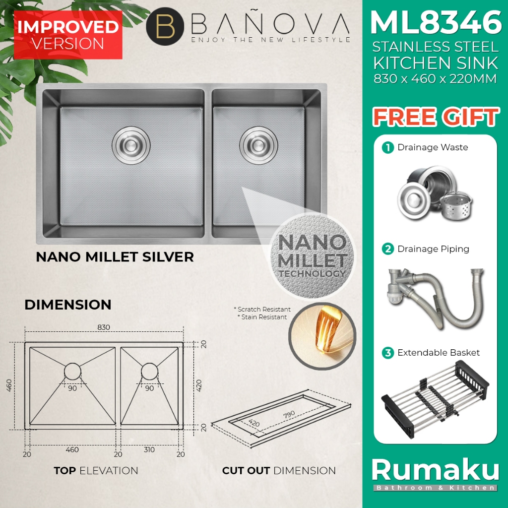 BANOVA SUS 304 Stainless Steel Home Kitchen Sink Sinki Dapur Nano Single Double Bowl