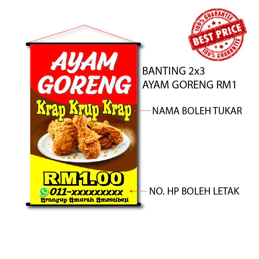 BANTING 2x3 AYAM GORENG RM1 (Boleh add Nombor HP) BUY 1 FREE 1