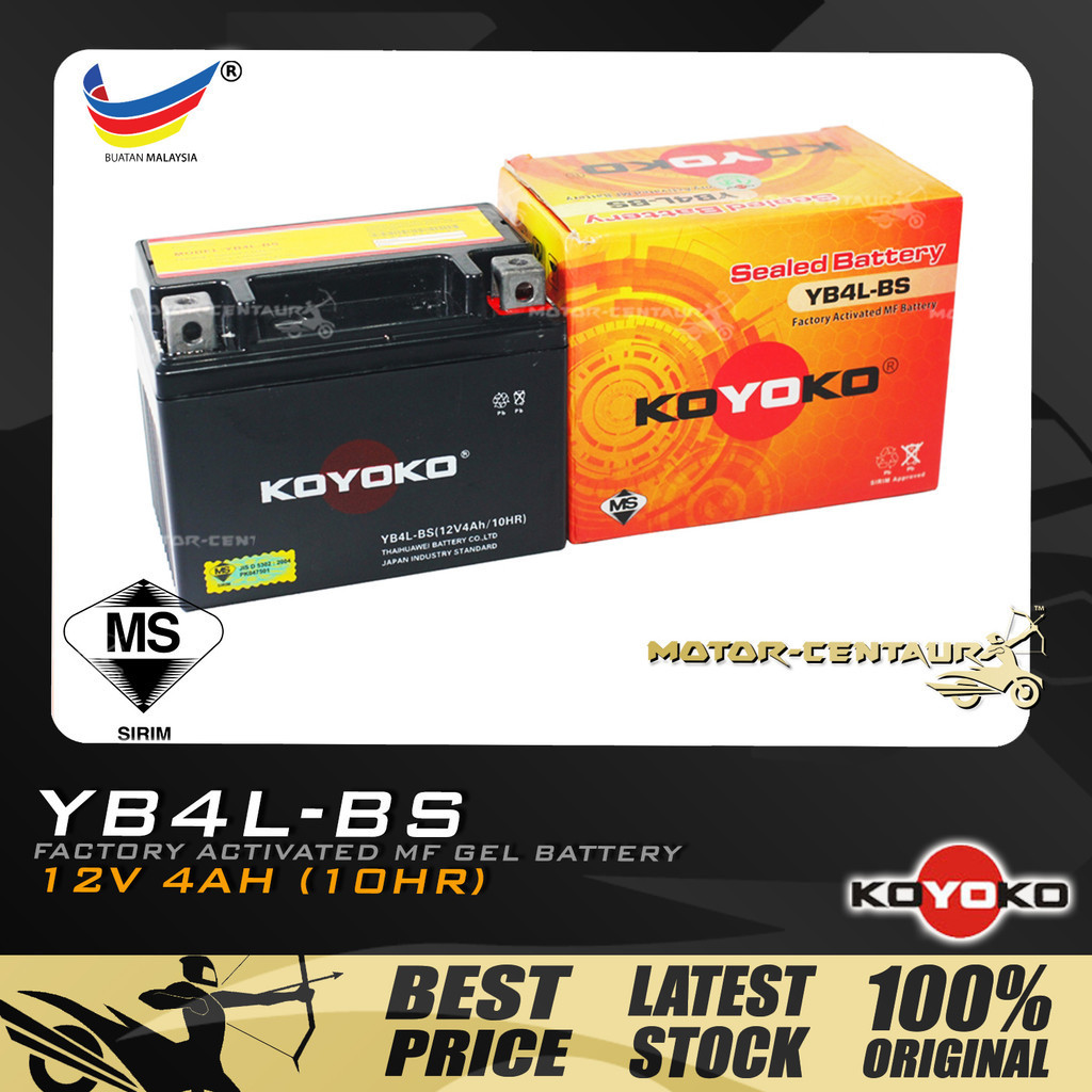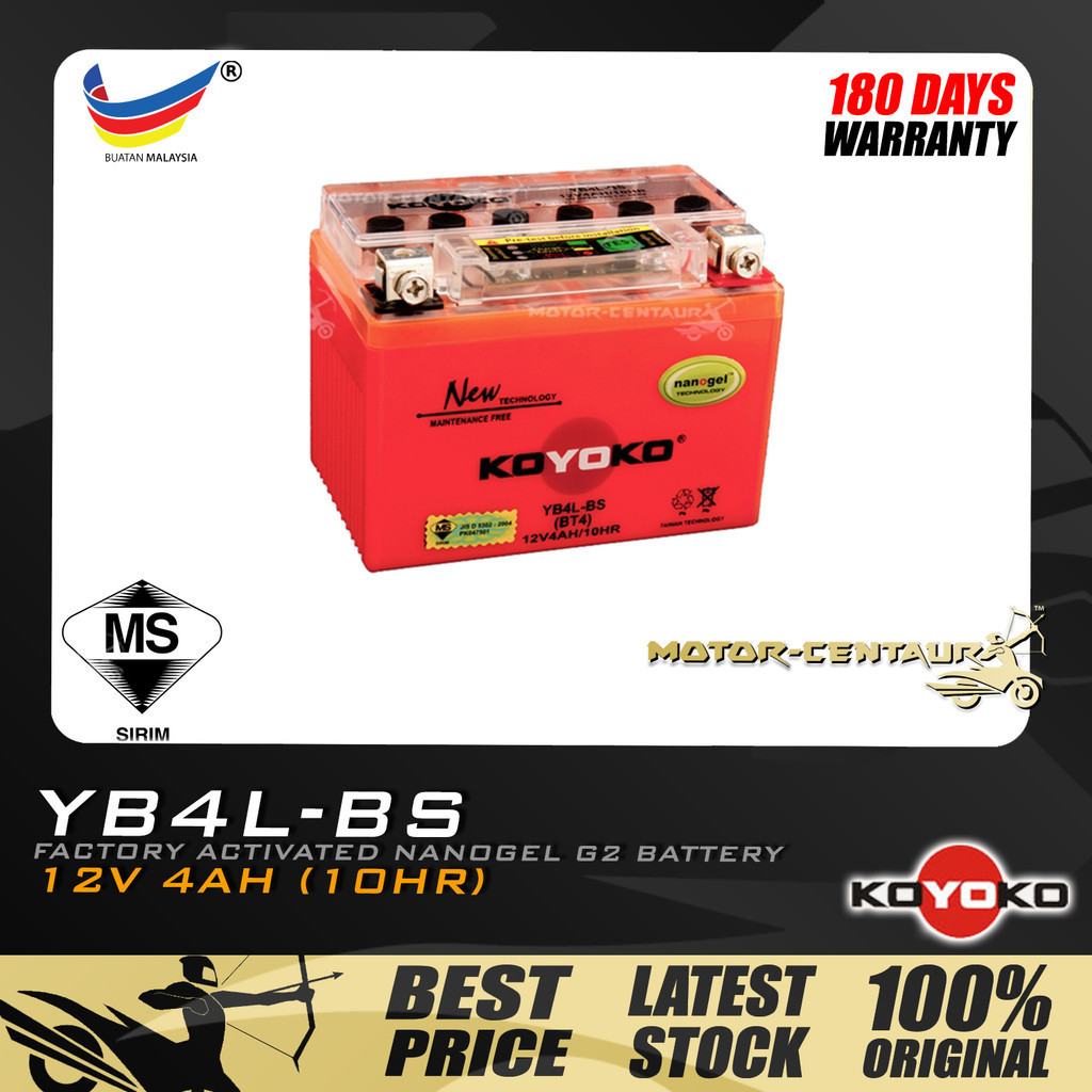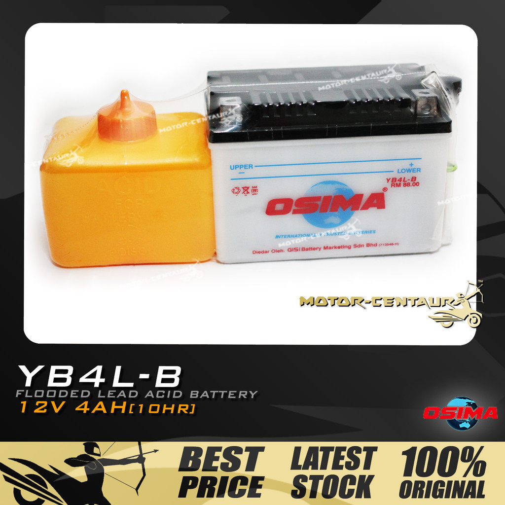 BATERI BASAH MOTOSIKAL OSIMA FLOODED CELLS LEAD ACID / KOYOKO NANOGEL BATTERY YB4L FOR DREAM/EX5 CLASS KICK STARTER