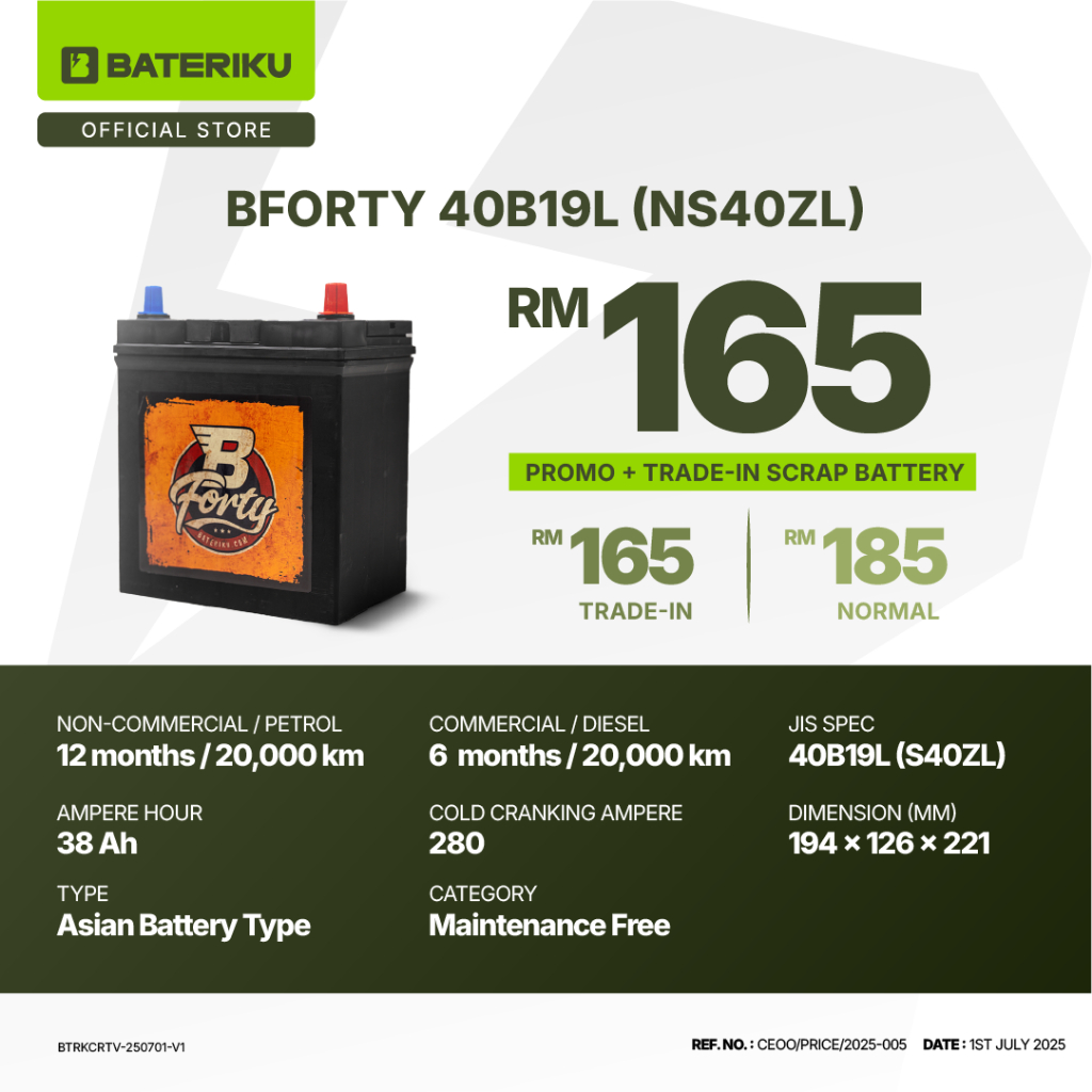 BATERI KERETA | NS40ZL | 40B19L | MF | BFORTY