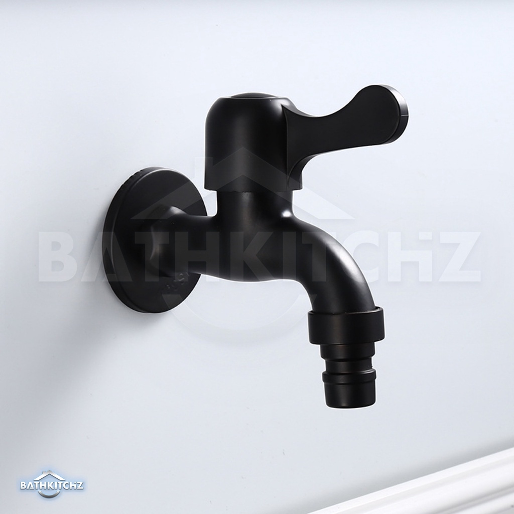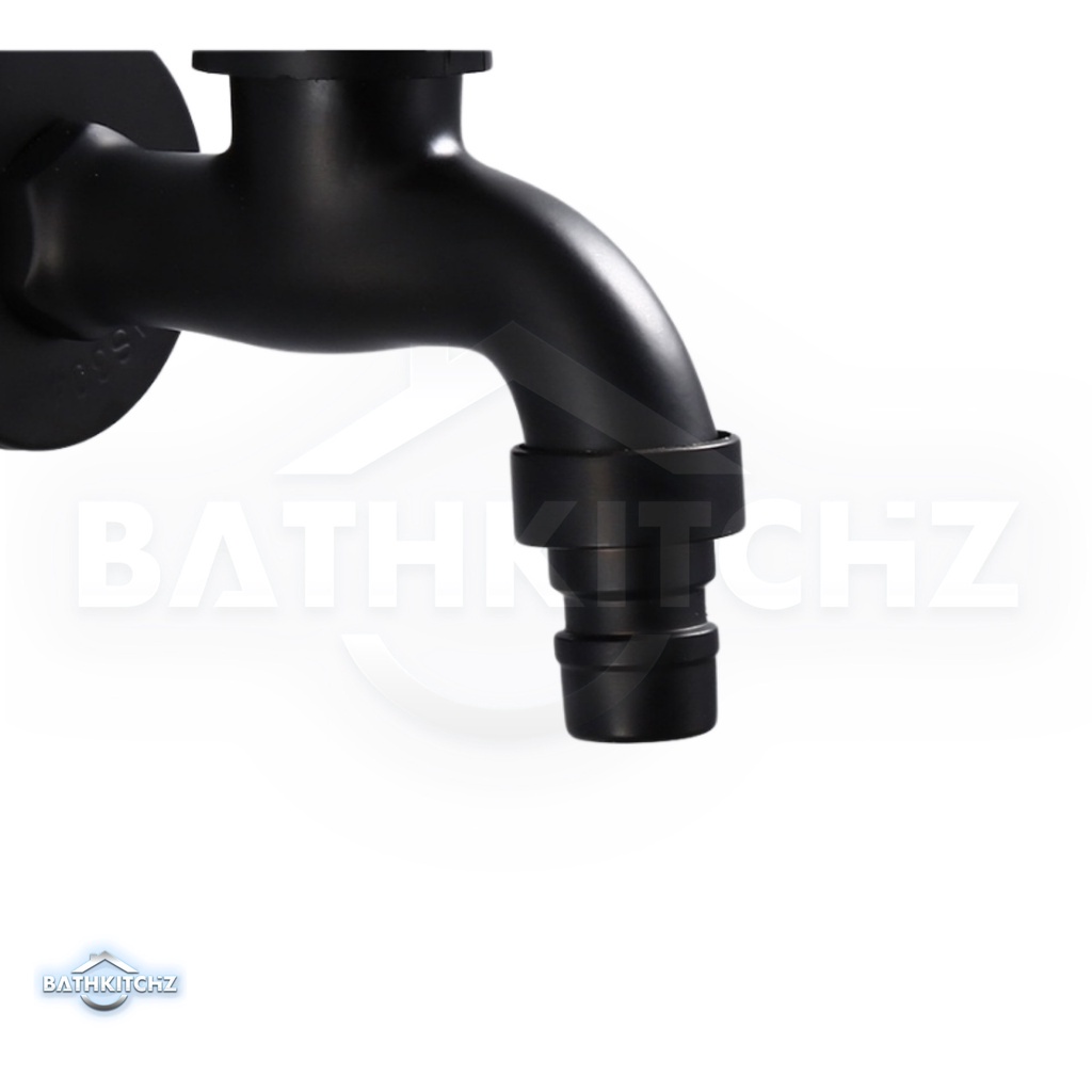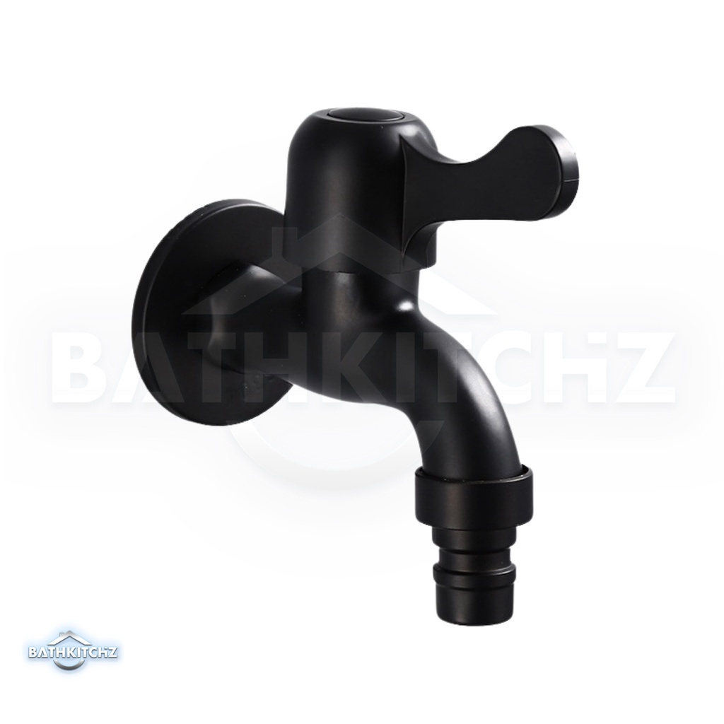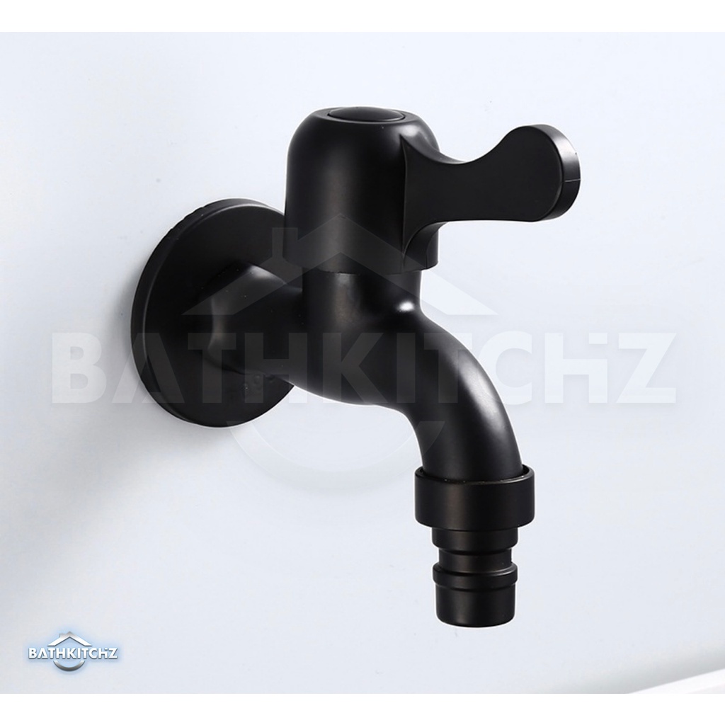 BATHKITCHZ Matte Black G1/2 SUS 304 Washing Machine Tap Faucet Wall Bib Tap Bathroom Faucet 4 Inch Water Tap 4 point