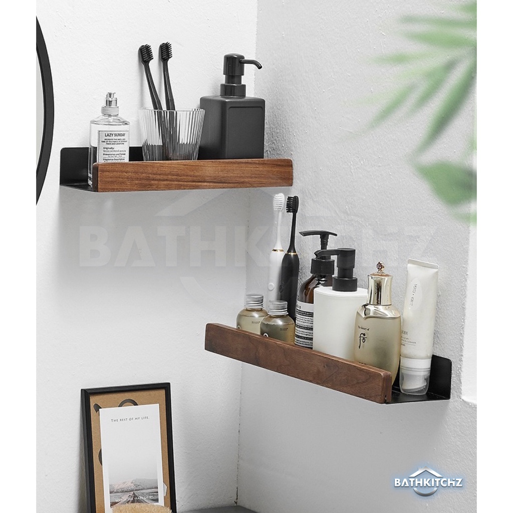 BATHKITCHZ Wooden Bathroom Shelving Shower Room Shelf Shampoo Rack Shampoo Holder Toilet Storage Rak