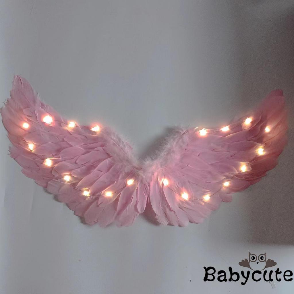 BB-Glowing Feather Wings for Kids Girls Light Up Angel Wing Fairy Wings Halloween Costume Birthday Party Favors Photography Props