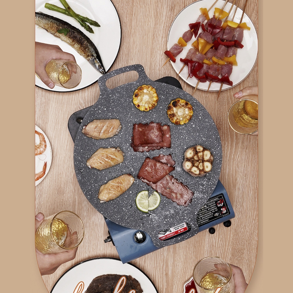 BBQ Grill Non-stick Grill Pan Circular Griddle Pan for BBQ Camping Gas Open Fire