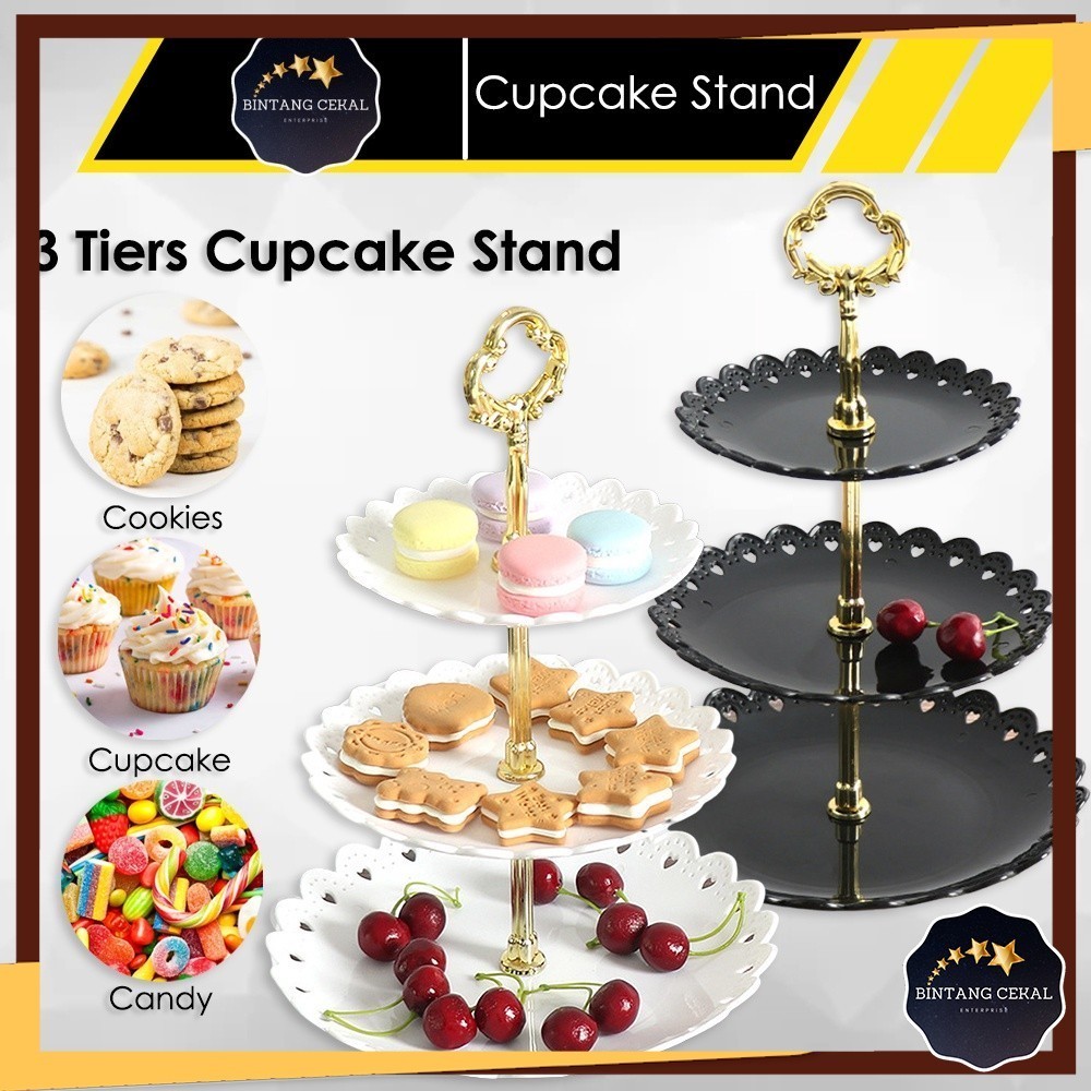BC 3 Layers Dessert Plate Cupcake Tray High Tea Tray Stand Portable Birthday Party Candy Fruits Round Tempat Letak Kek