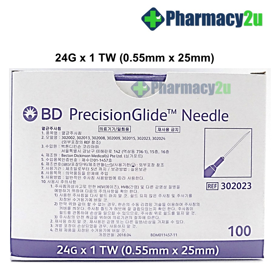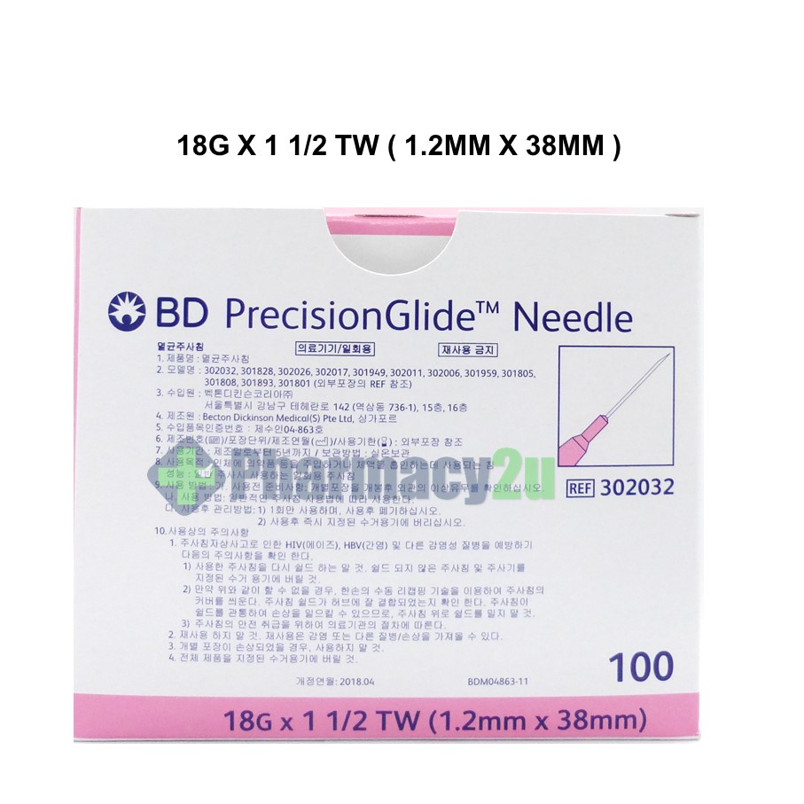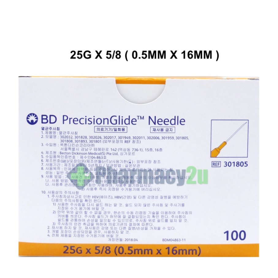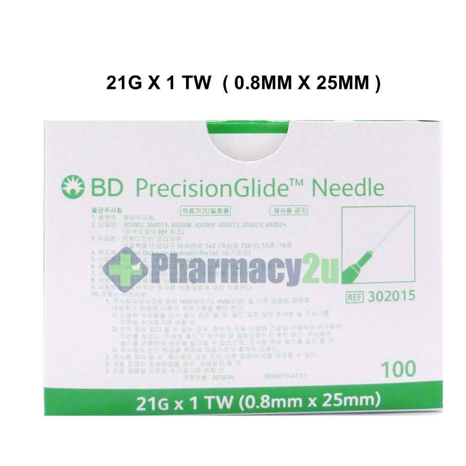 BD PRECISIONGLIDE NEEDLE /DRAWING UP NEEDLE 18G/19G/21G/22G/23G/25G/27G 100S