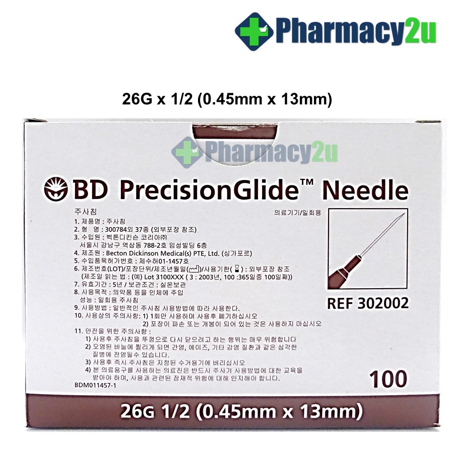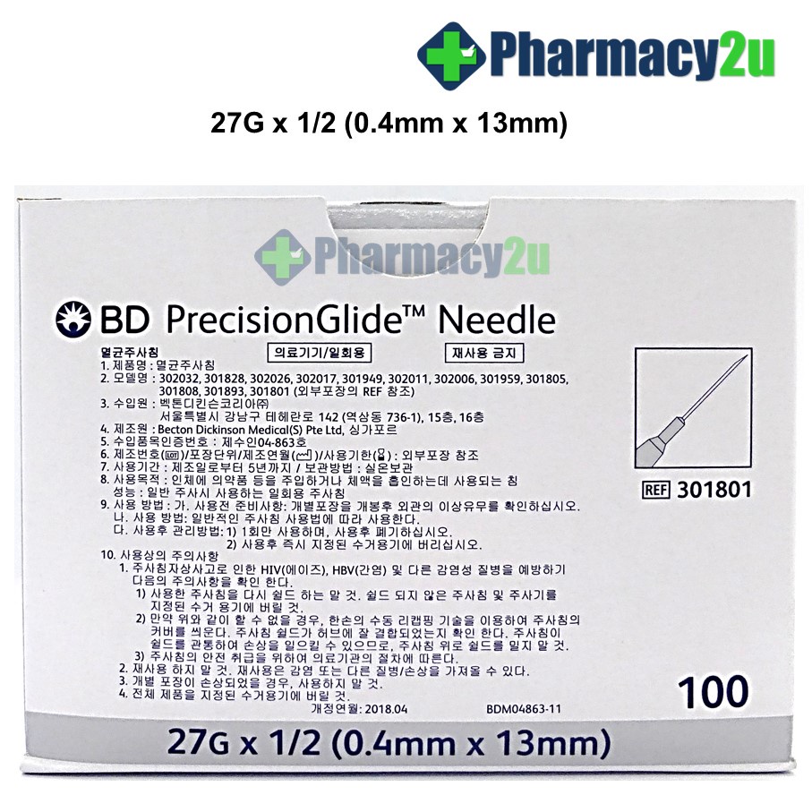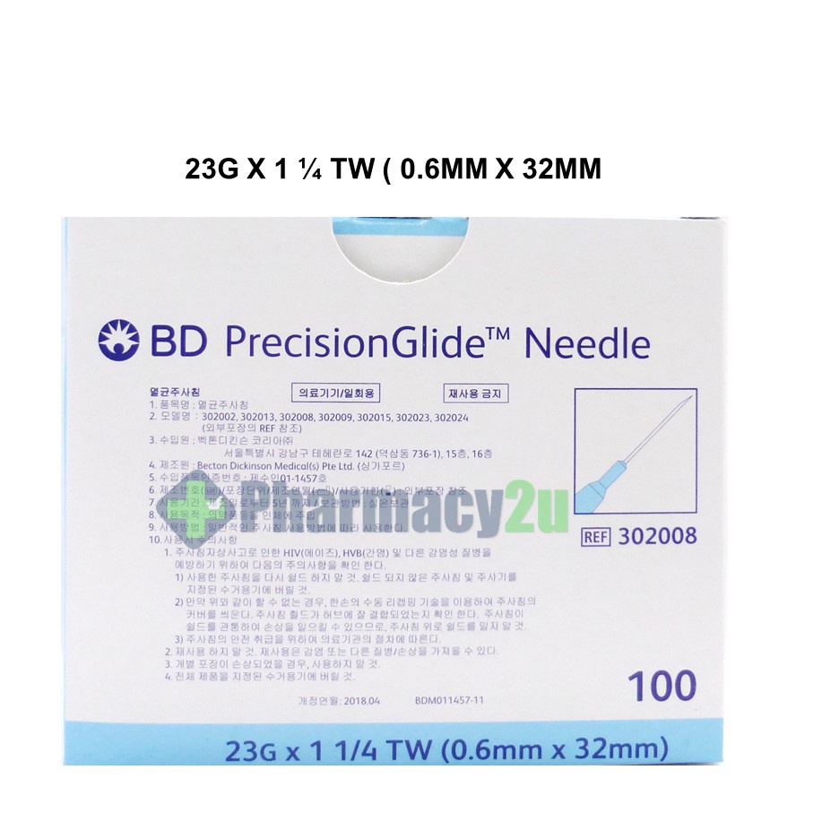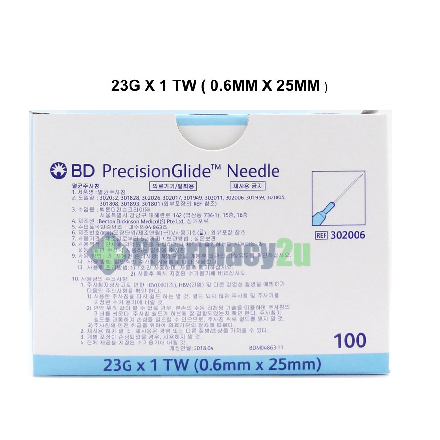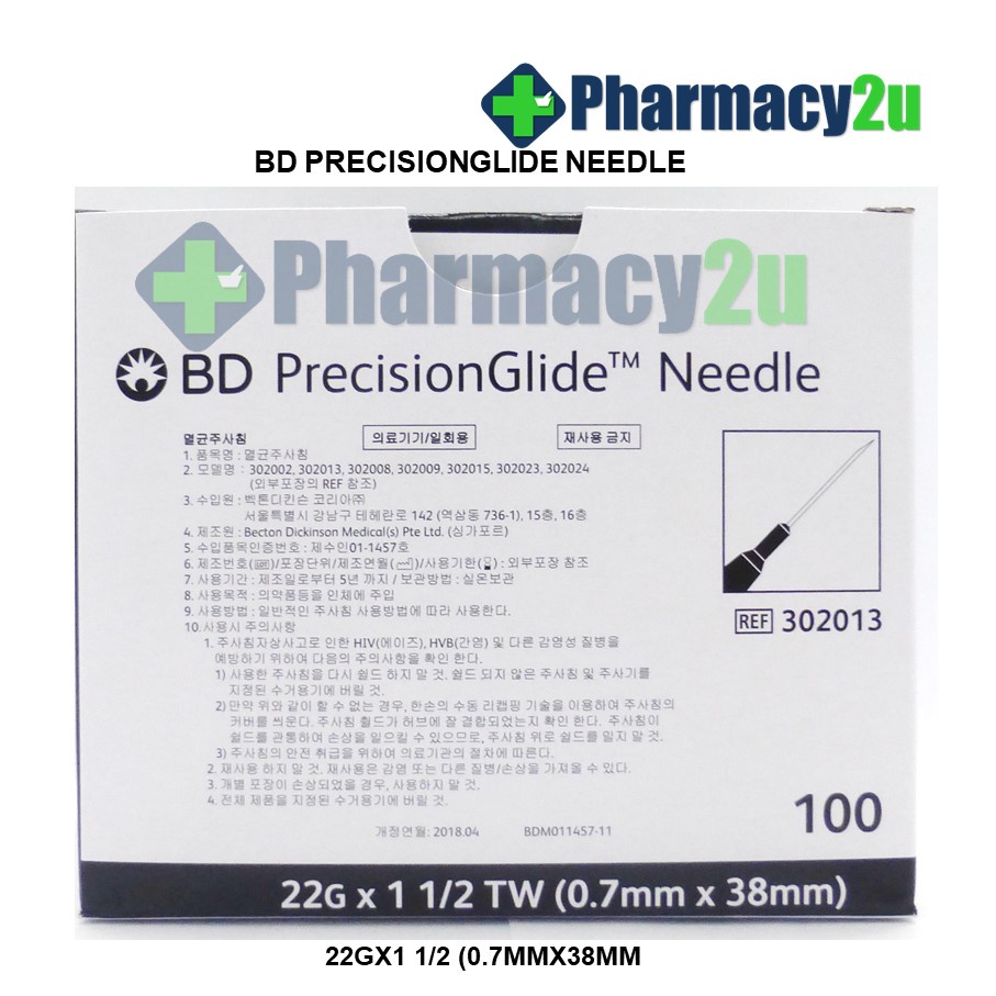 BD PRECISIONGLIDE NEEDLE /DRAWING UP NEEDLE 18G/19G/21G/22G/23G/25G/27G 100S