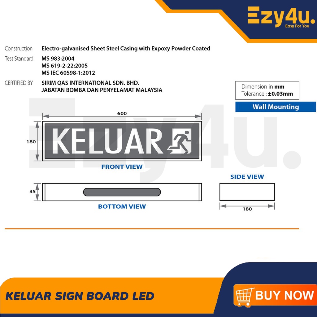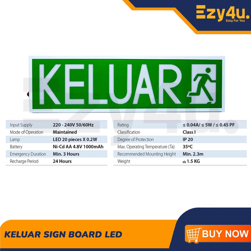 BE1ST 101B LED Keluar Exit Sign Board with Bomba Approved Lesen Sirim Wall Mounting