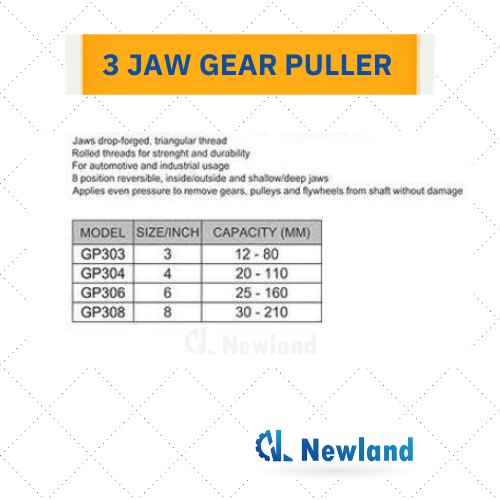 BEARING PULLER / 3 JAW GEAR PULLER / 3 JAW PULLER (3, 4, 6, 8 INCH)