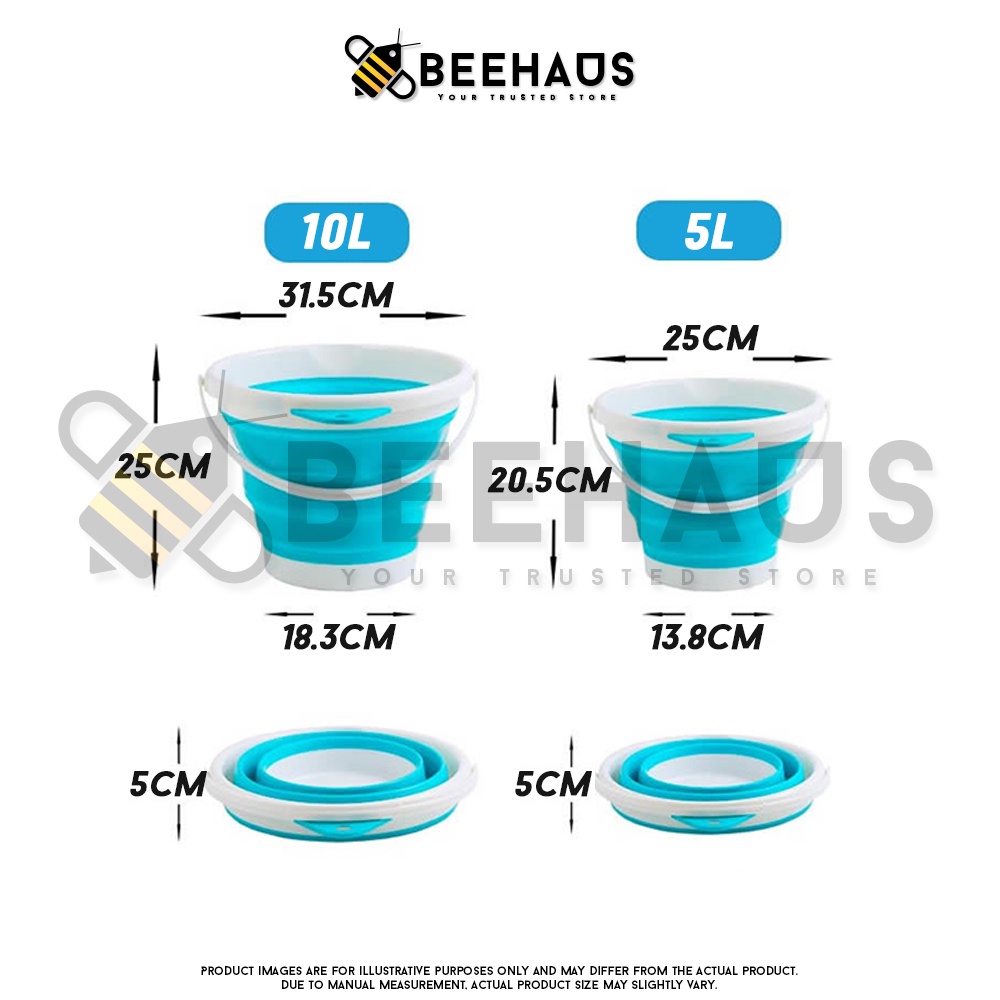 BEEHAUS Foldable Bucket | Collapsible Bucket | Portable Folding Pail Car Washing Outdoor Travel Fishing | Baldi Lipat