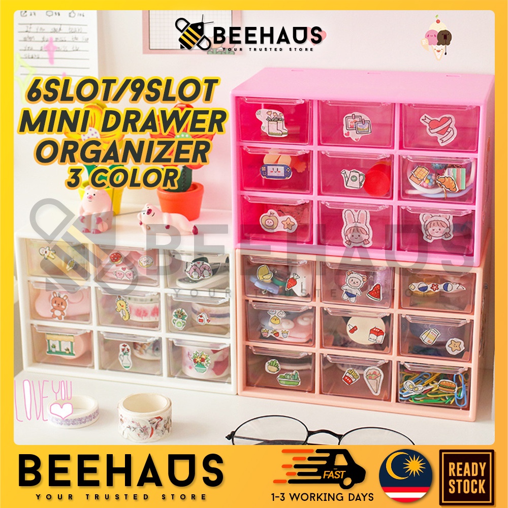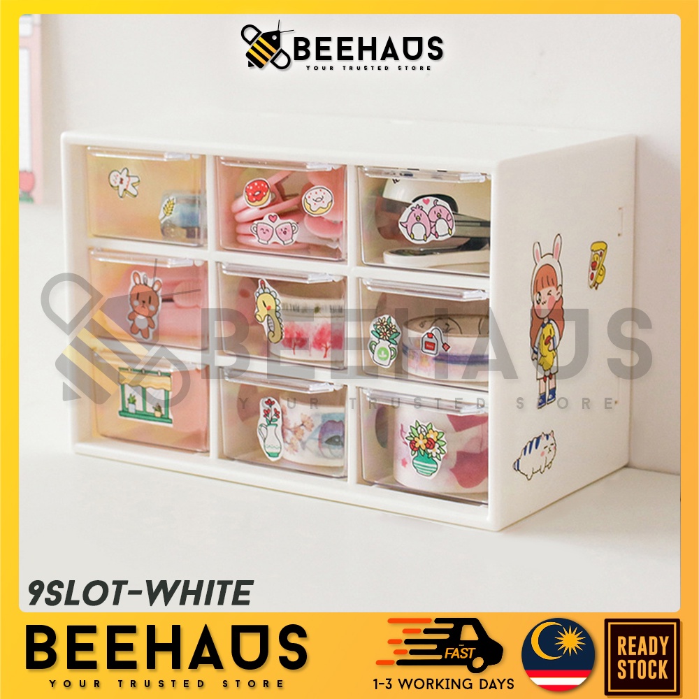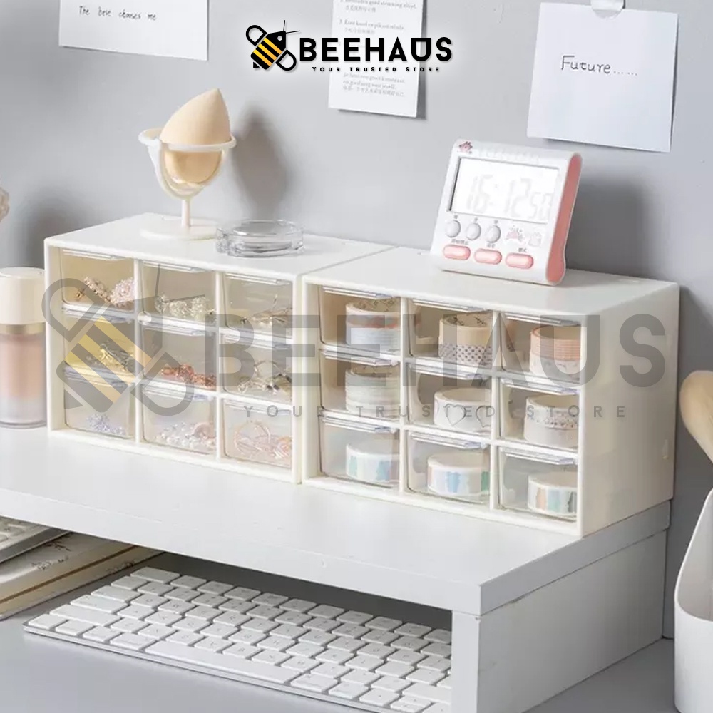 BEEHAUS Mini Box Drawer Organizer | 6 / 9 Slot Drawer Desk Organizer Jewelry Stationery Storage Box | Laci Kecil Meja