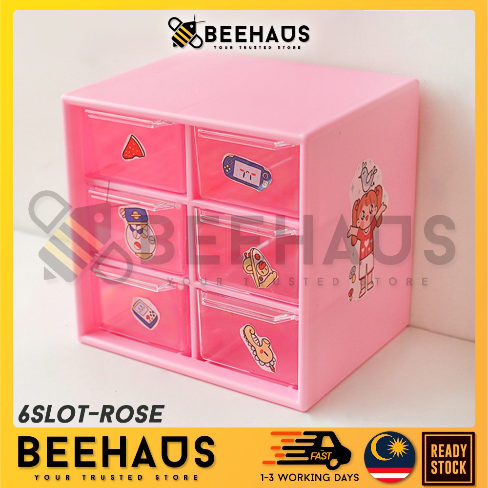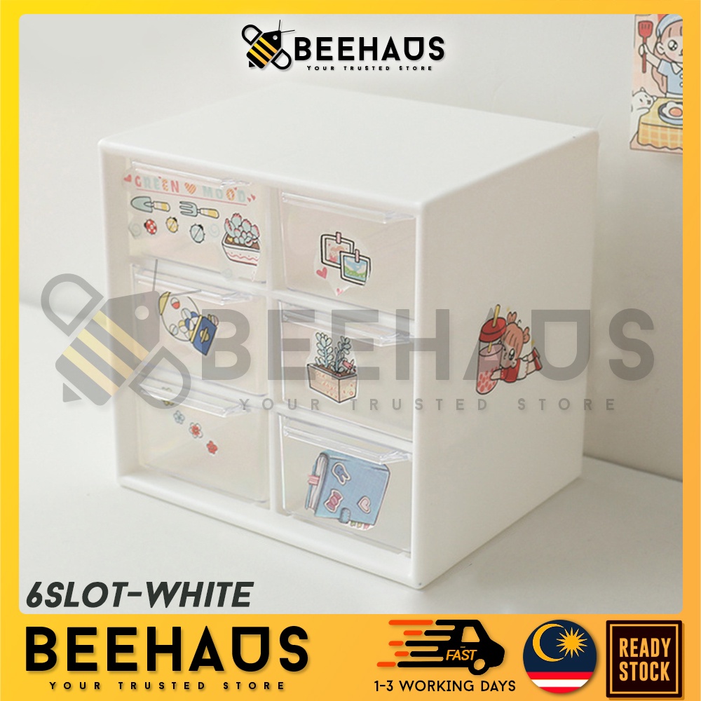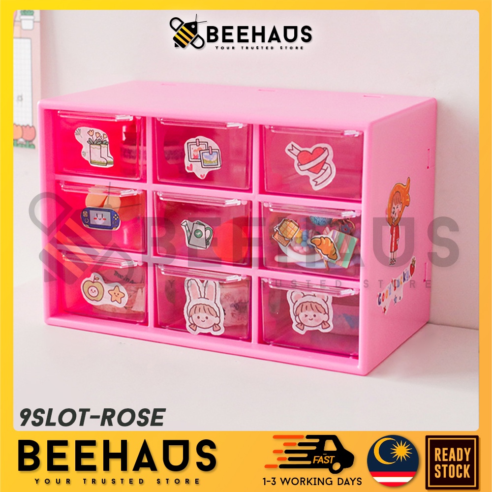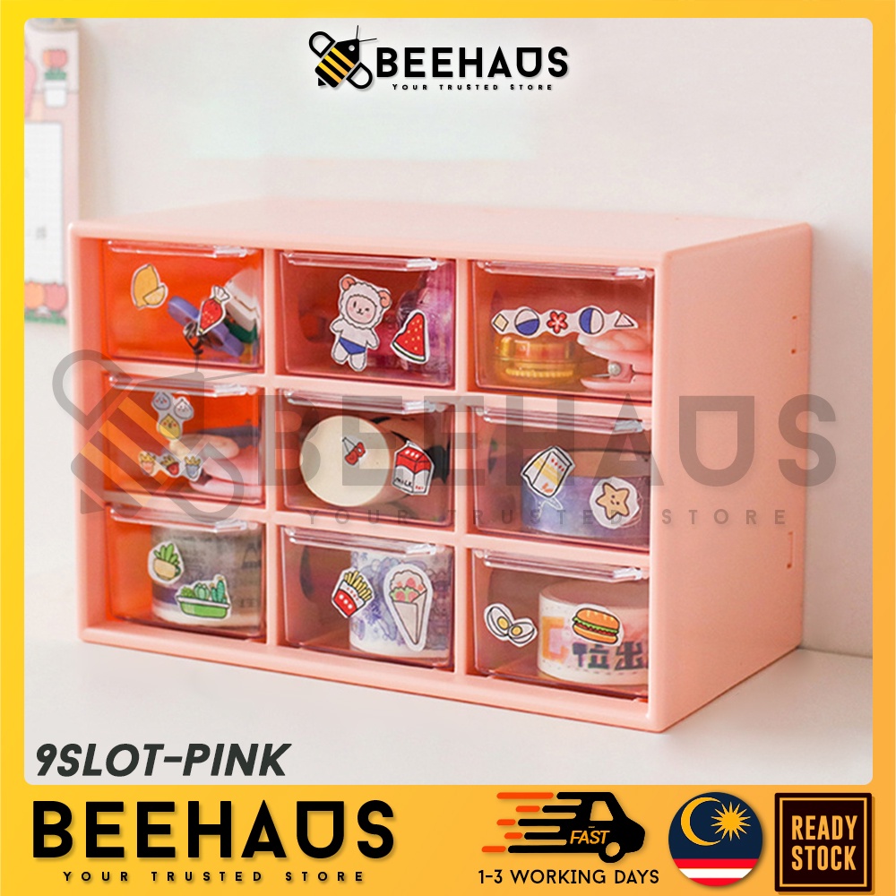 BEEHAUS Mini Box Drawer Organizer | 6 / 9 Slot Drawer Desk Organizer Jewelry Stationery Storage Box | Laci Kecil Meja