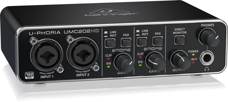 BEHRINGER U-PHORIA UMC202HD Audiophile 2x2, 24-Bit/192 kHz USB Audio Interface with MIDAS Mic Preamplifiers