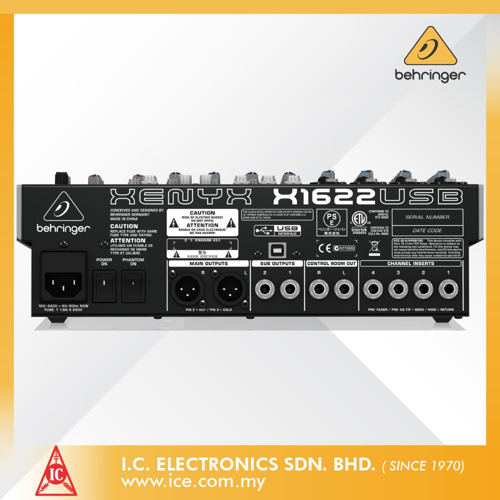 BEHRINGER XENYX X1622USB Premium 16-Input 2/2-Bus Mixer with XENYX Mic Preamps and Compressors.