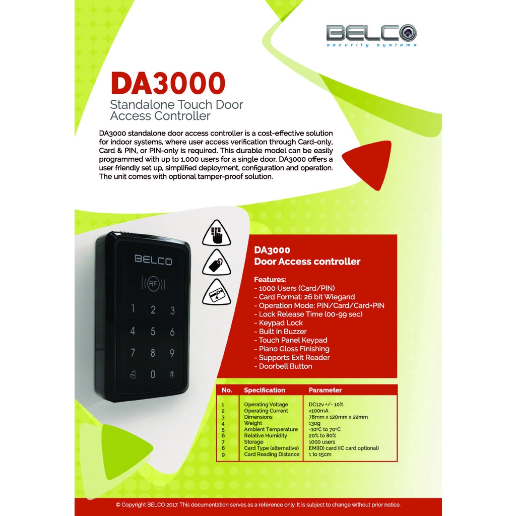 BELCO Door Access Card Reader DA3000 | Belco Door Access System | Belco RFID Door Access