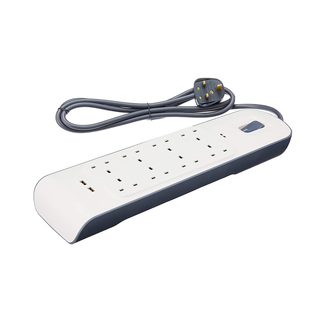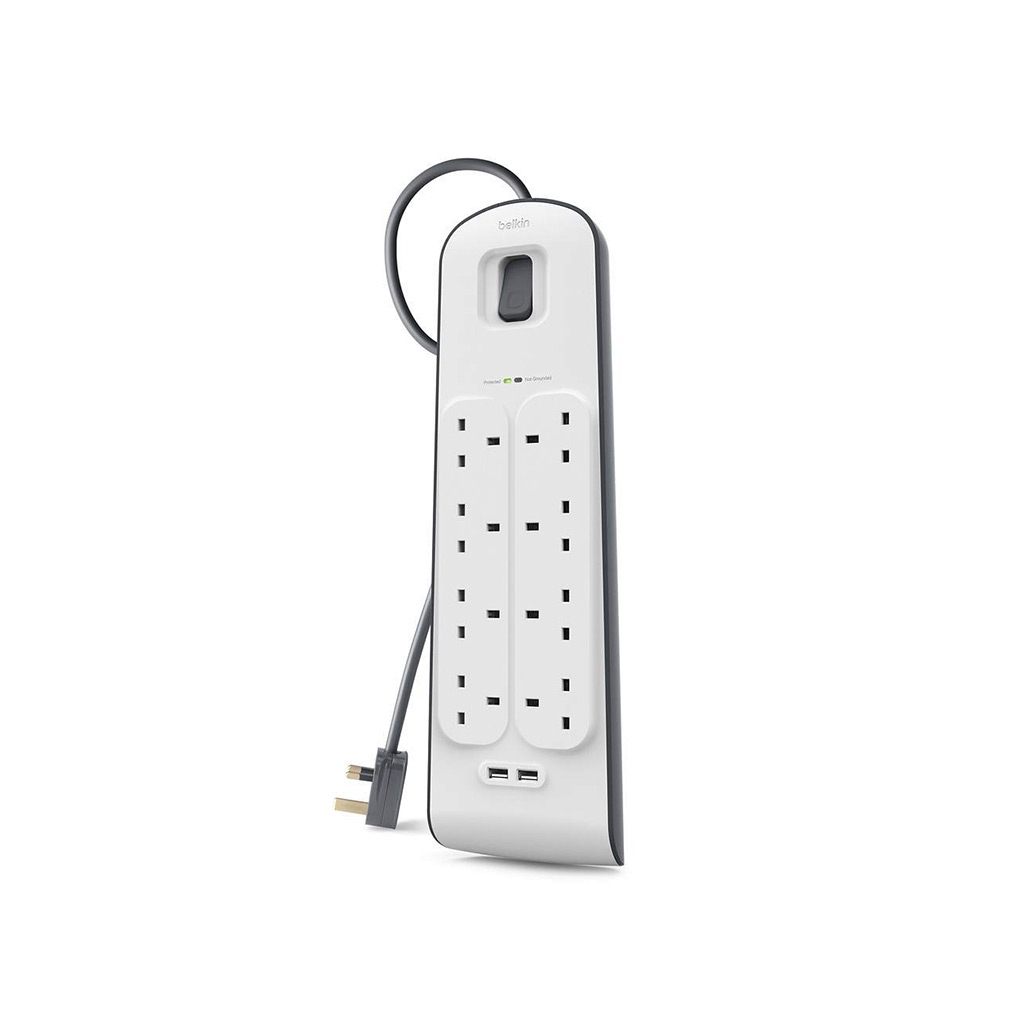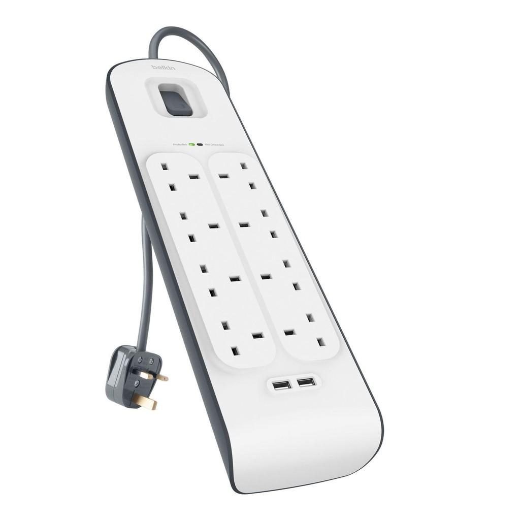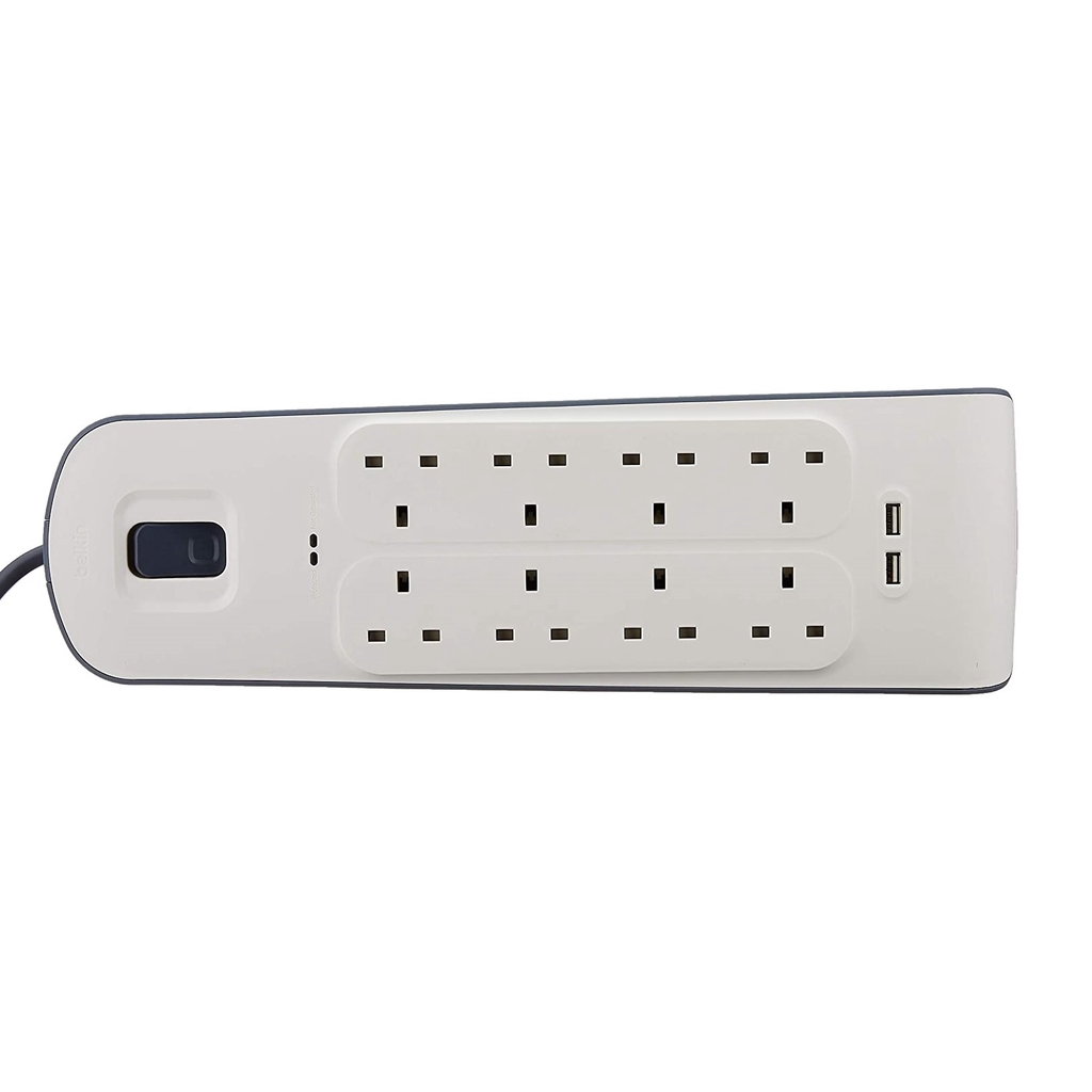 BELKIN BSV804SA2M 8 UK PLUGS + 2 USB EXTENSION SOCKET THUNDER SURGE PROTECTOR SOCKET PLUG SIRIM, 2METER