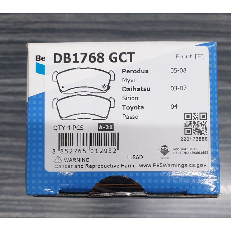 BENDIX FRONT DISC BRAKE PAD MYVI 2005 DB1768