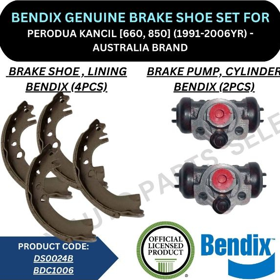 BENDIX GENUINE BRAKE LINING, SHOE, PUMP (REAR) FOR PERODUA KANCIL [660, 850] (1991-2006YR) - AUSTRALIA BRAND