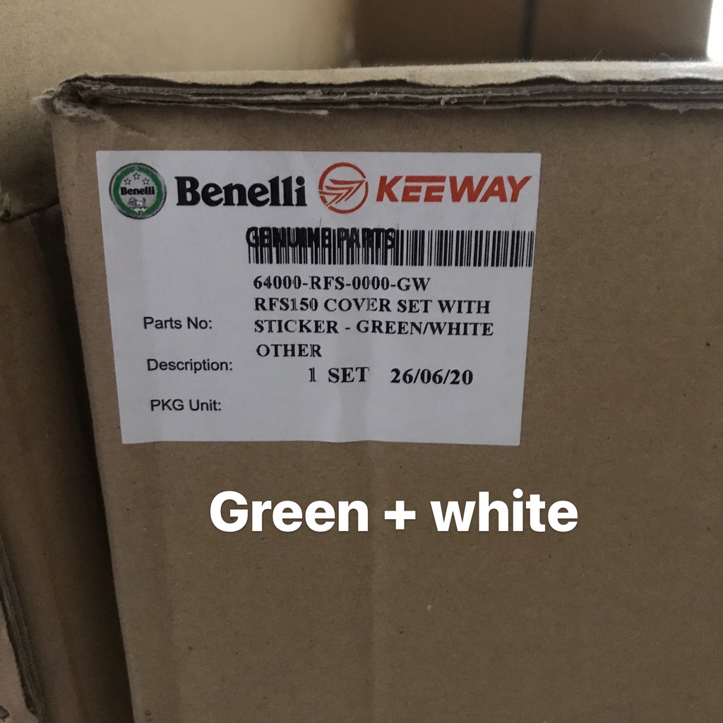BENELLI RFS150 COVER SET ( ORIGINAL ) WITH STICKER + METER COVER // GREEN + WHITE // LIMITED COLOUR // COVERSUT