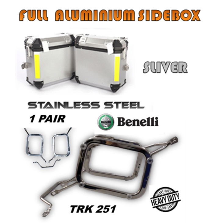 BENELLI TRK 251 FULL ALUMINIUM SIDE BOX HIGH QUALITY WATER PROOF 30LITER 35LITER 36LITER BOXS & CASES