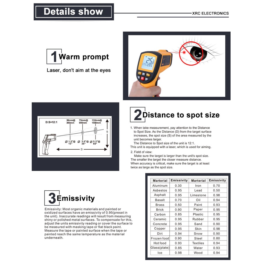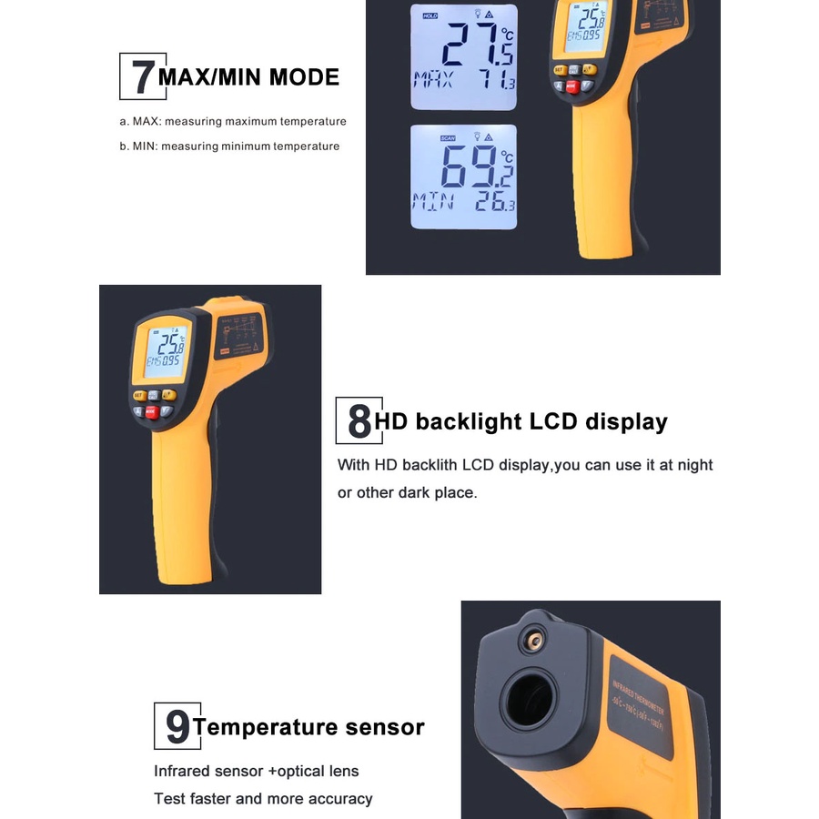 BENETECH GM700/GT750/GT950 Digital Infrared Thermometer IR Imager Handheld Digital Temperature Non-Contact Hygrometer
