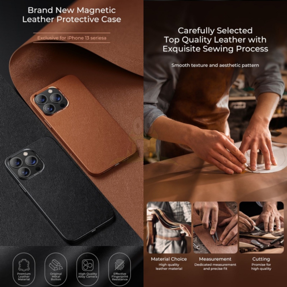 BENKS MSAFE LEATHER Case for iPhone 13 Pro Max/ 13/ 13 Pro/ 13 Mini Genuine Magnetic Shockproof Phone Case Cover Casing