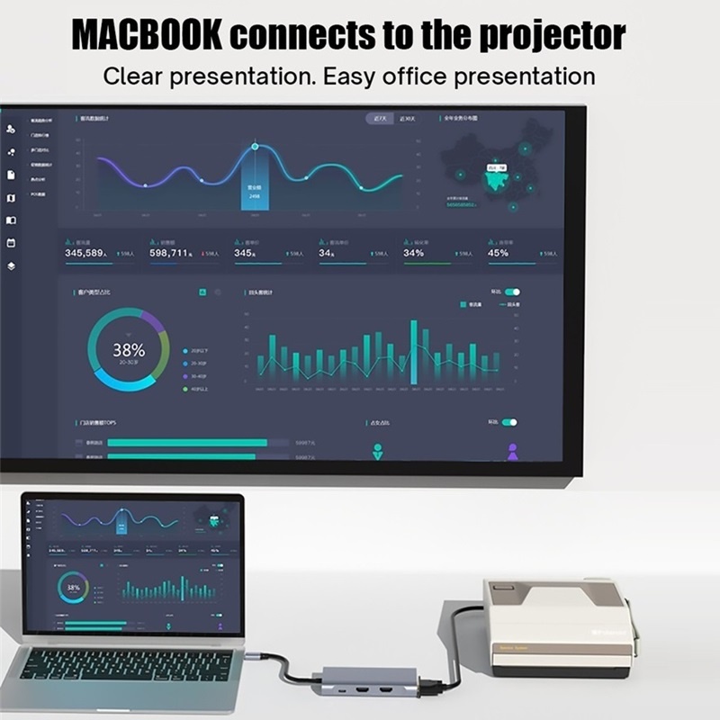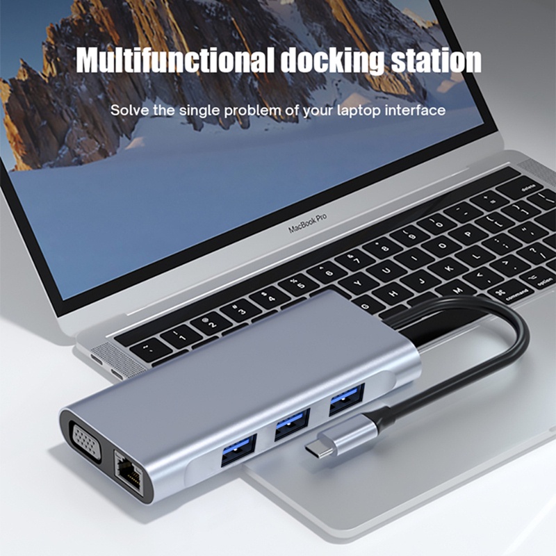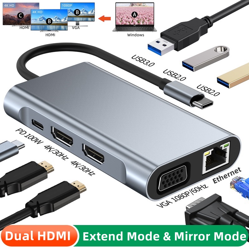 BENOSEM Type-C To Dual HDMI VGA Adapter Docking Station USB C HUB Support MST Multi-screen Extend Mode With TF Micro SD Card Readers RJ45 Ethernet PD USB Hub Adapter Triple Display
