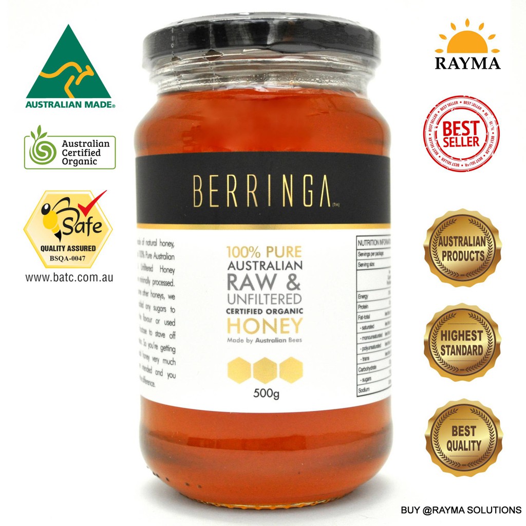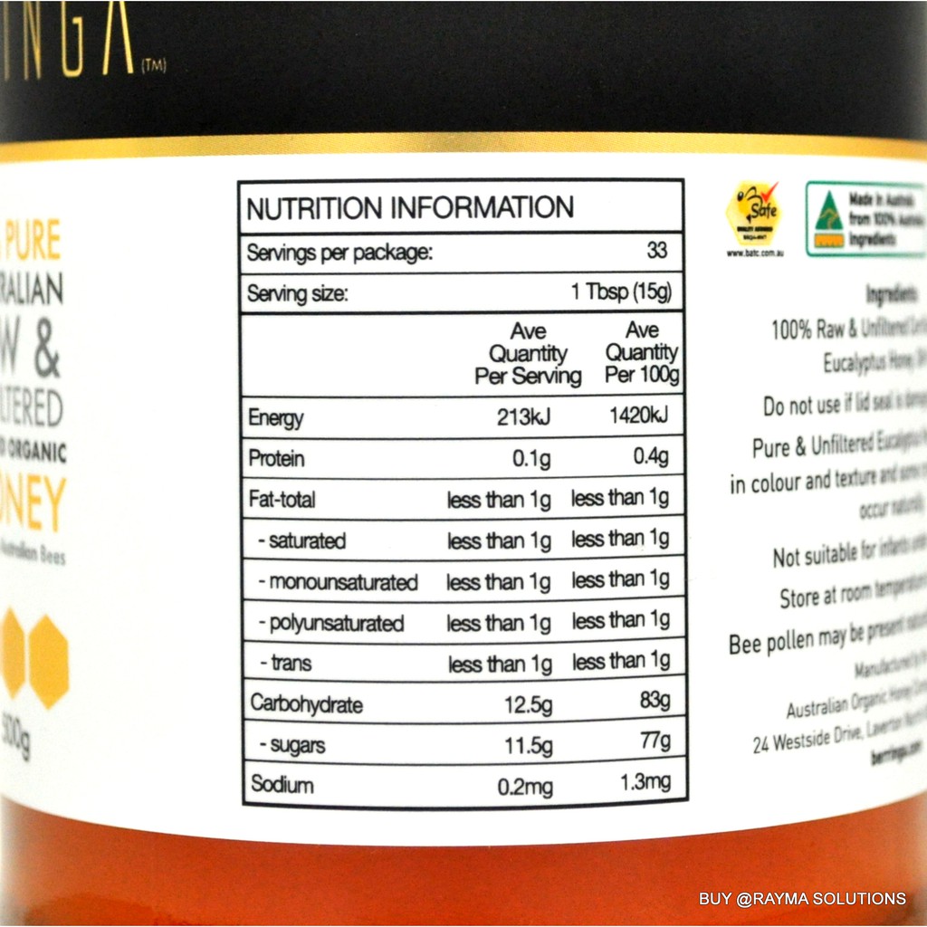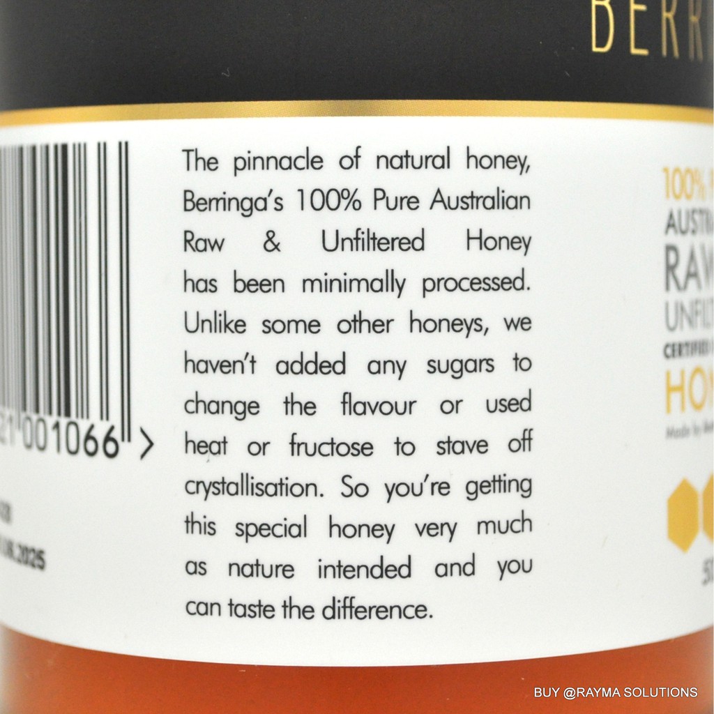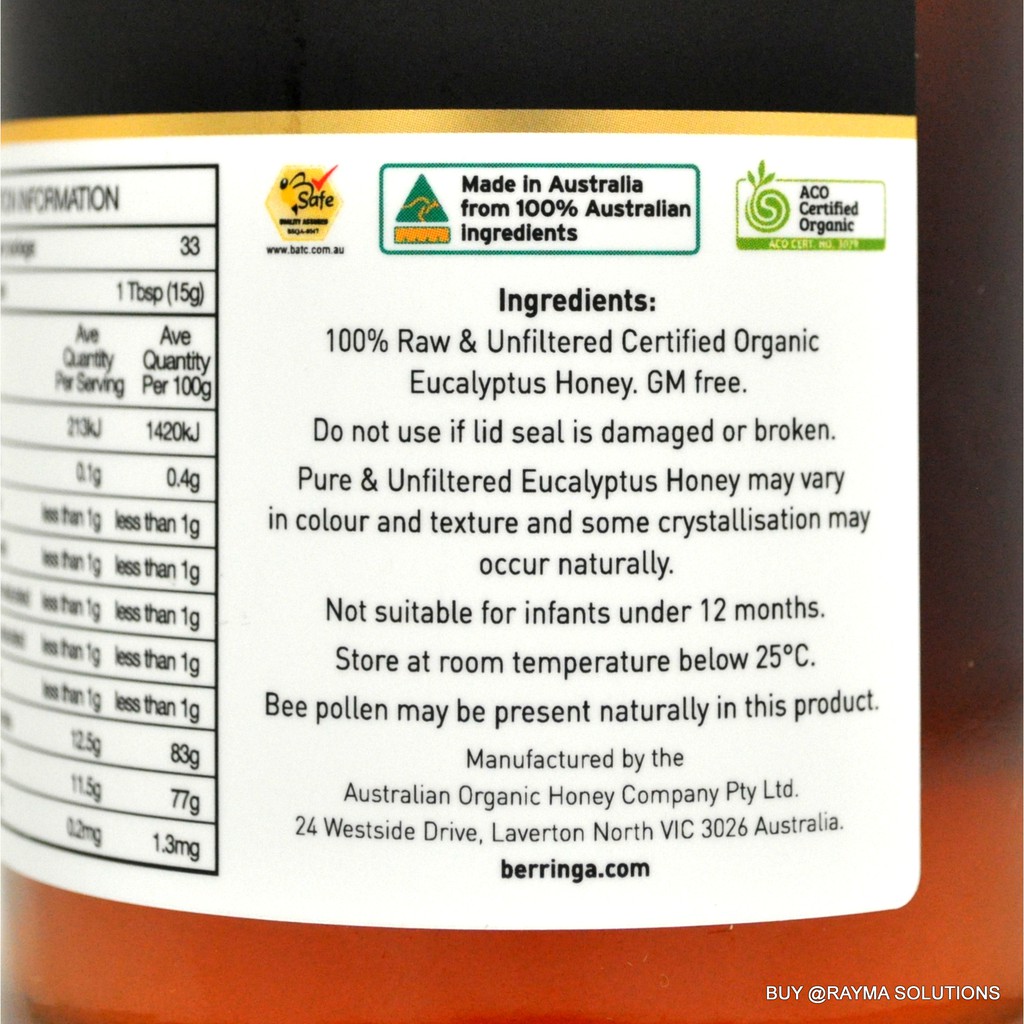 BERRINGA Premium 100% Pure Australian Raw & Unfiltered Certified Organic Honey, 500g