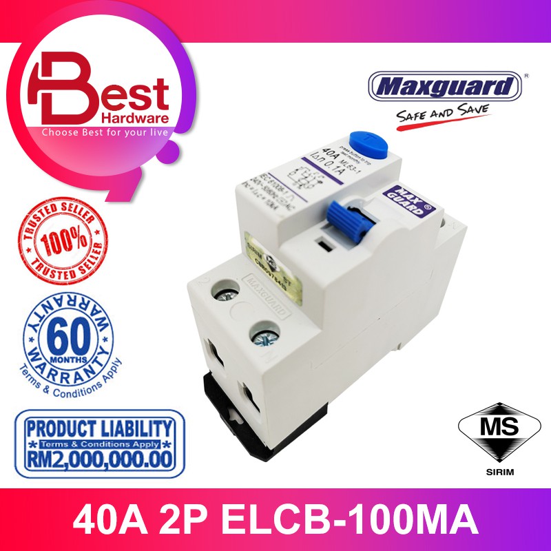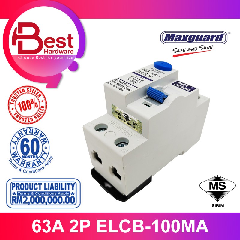 BEST HARDWARE - MAXGUARD 2 POLE ELCB - 100MA ( 40A/ 63A )
