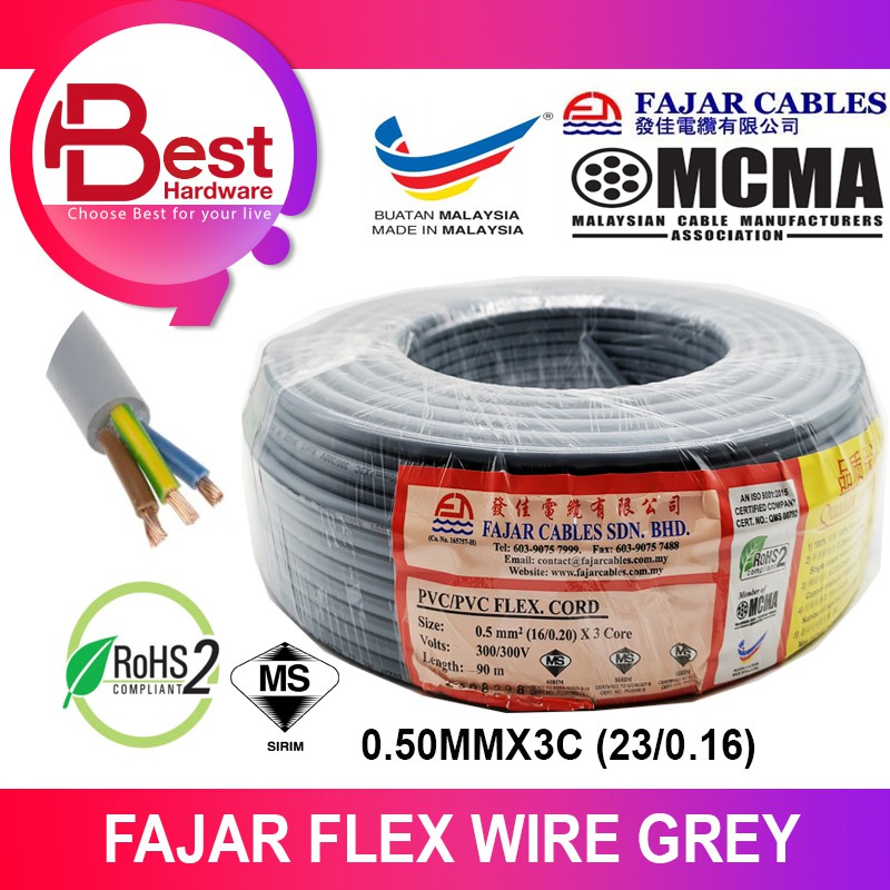 BEST HARDWARE - UMS 3 Core0.5 mm PVC Flexible Cable PER METER 100% Pure Copper 3core 0.5mm