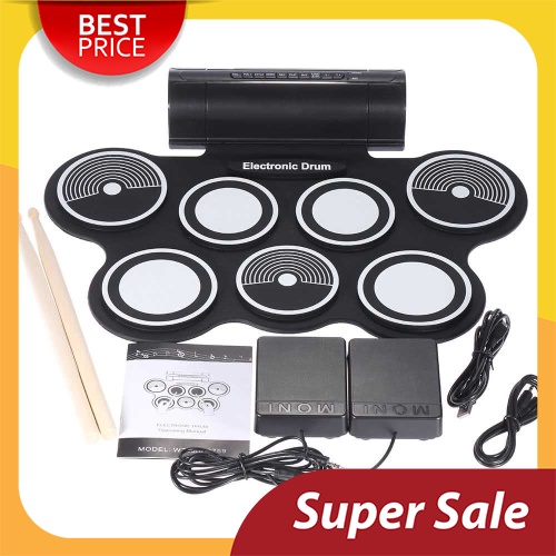 BEST SELLER Portable Foldable Silicone Electronic Drum Pad Kit Digital USB MIDI Roll-up with Drumstick Foot Pedal 3.5mm
