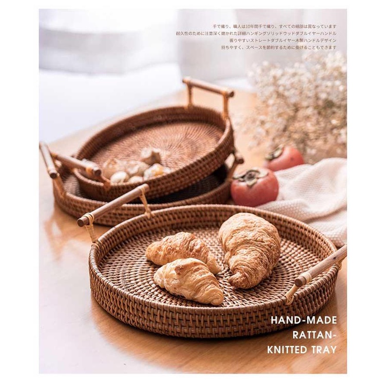 BEST4U Hand-Woven Rattan Basket/Rattan Storage/Rattan Tray/Wicker Basket/Handmade Rattan Multipurpose Storage Box