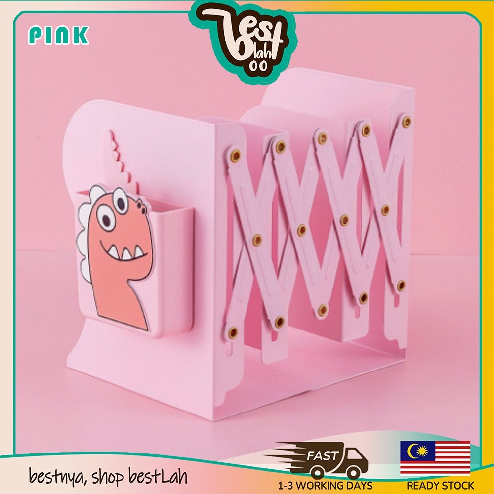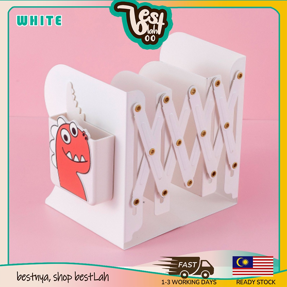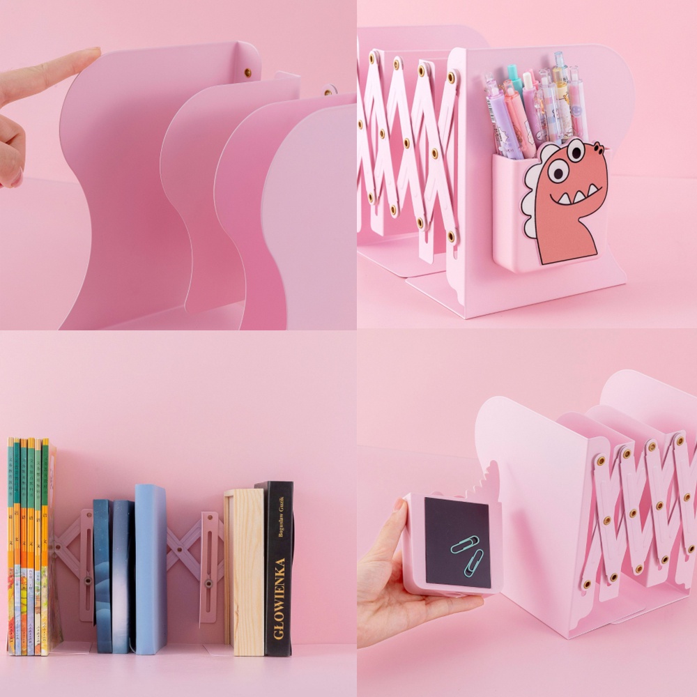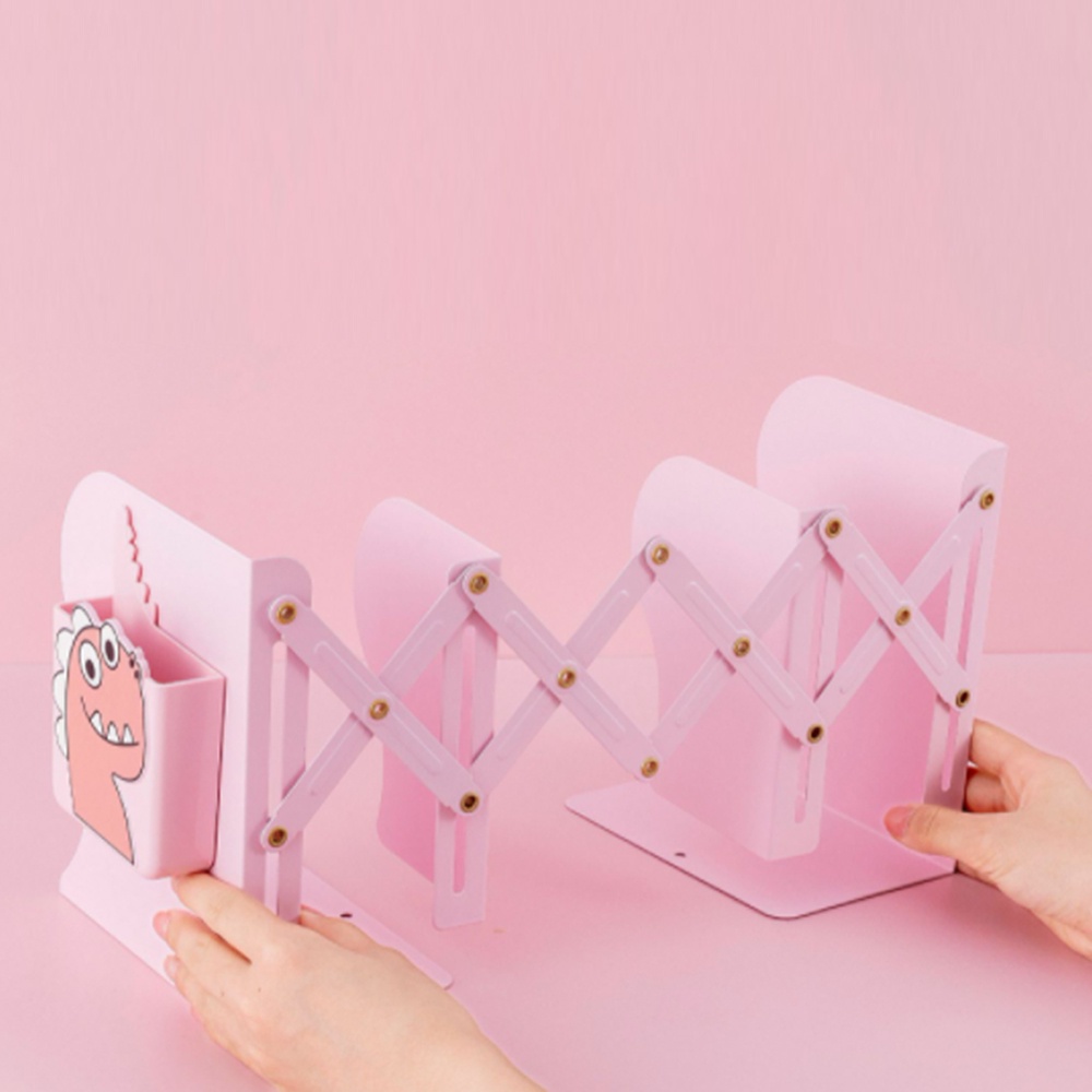 BESTLAHH Cute Cartoon Bookends Pen Holder Expandable Book Stand Metal Book Shelf Creative Bookcase Anti Skid Rak Buku