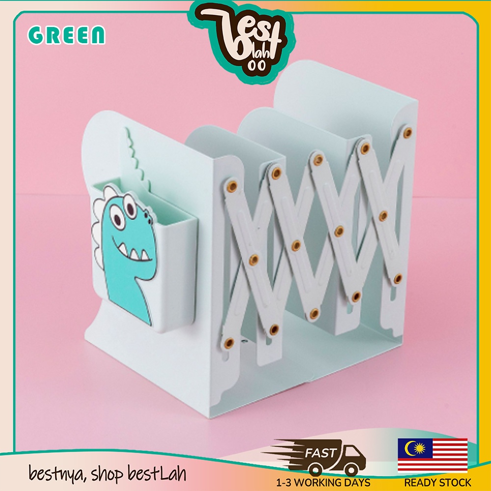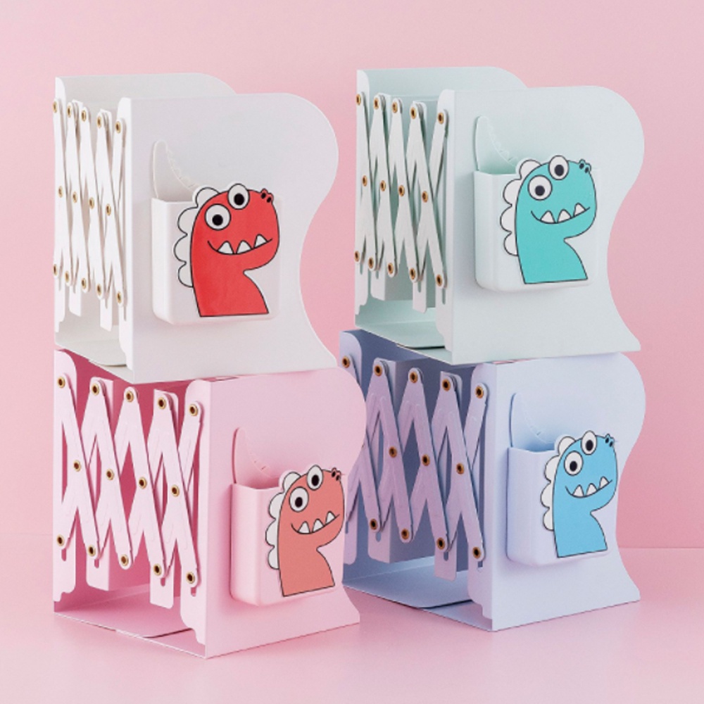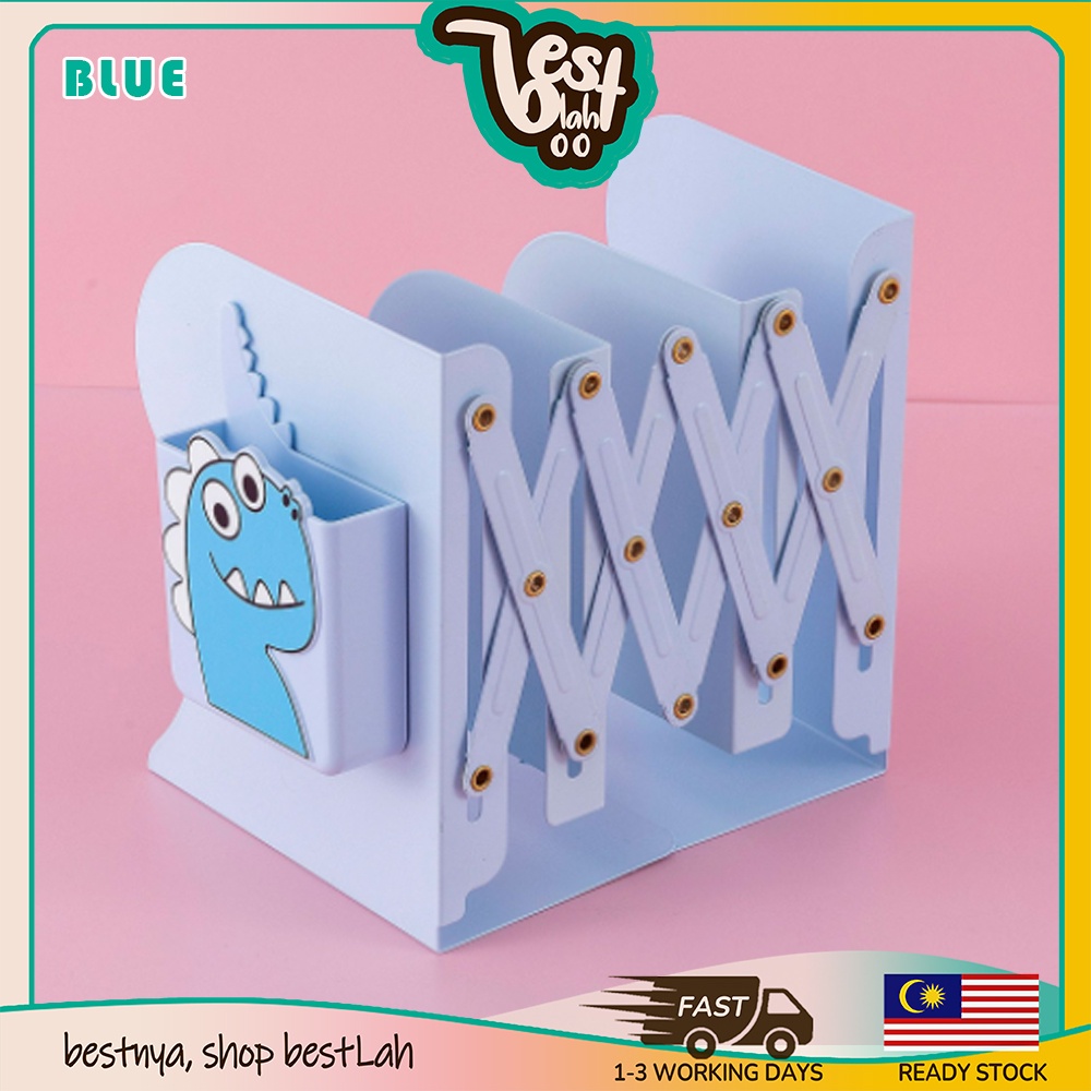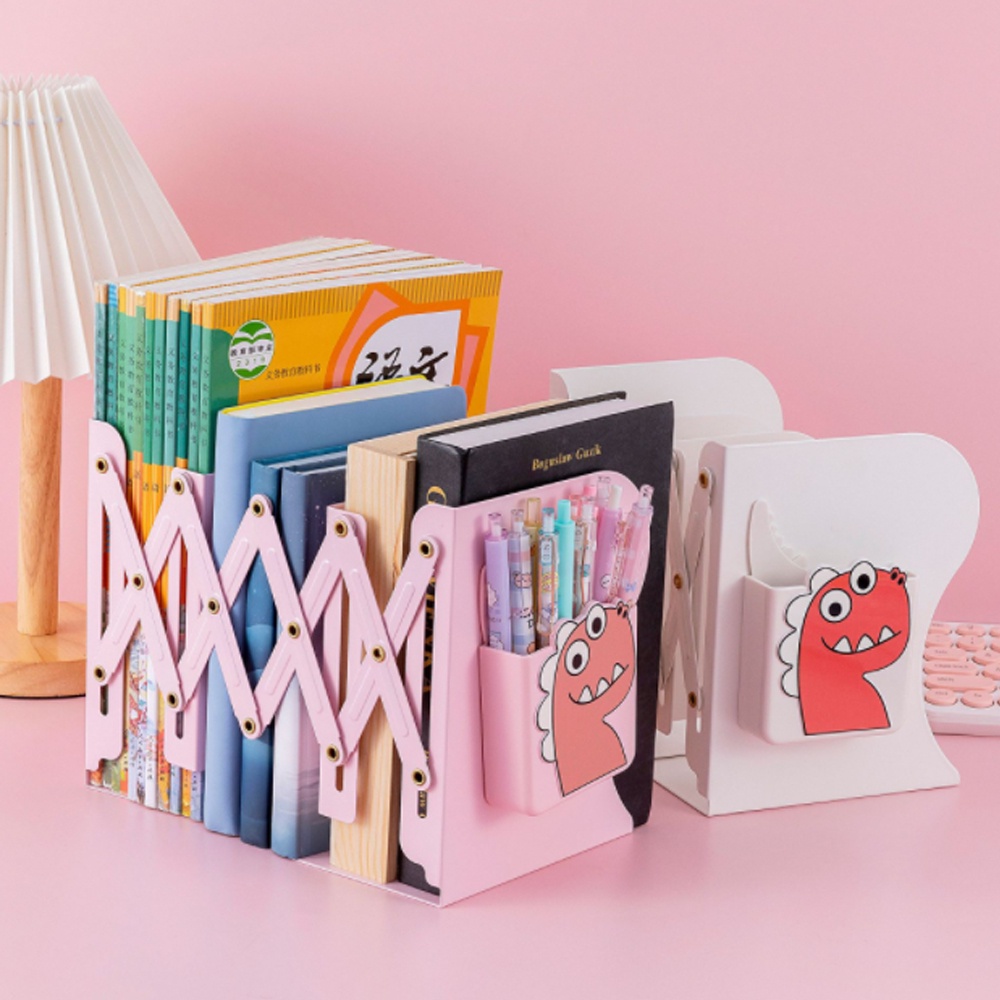BESTLAHH Cute Cartoon Bookends Pen Holder Expandable Book Stand Metal Book Shelf Creative Bookcase Anti Skid Rak Buku