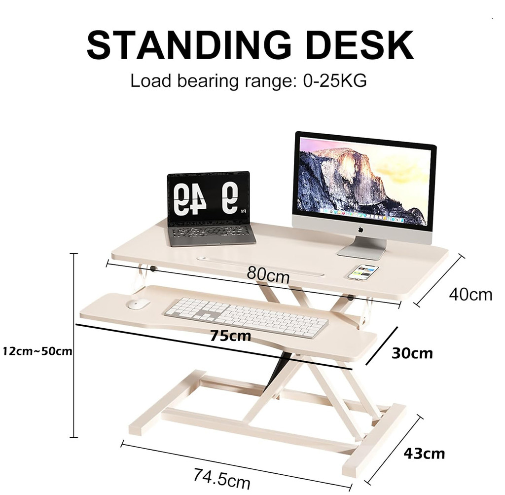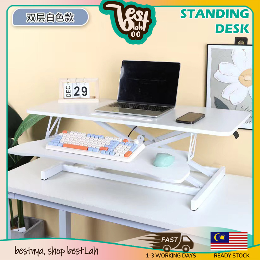 BESTLAHH Height Adjustable Table Office Standing Desk Stand Up Rising Desk Converter Tabletop Workstation Removable