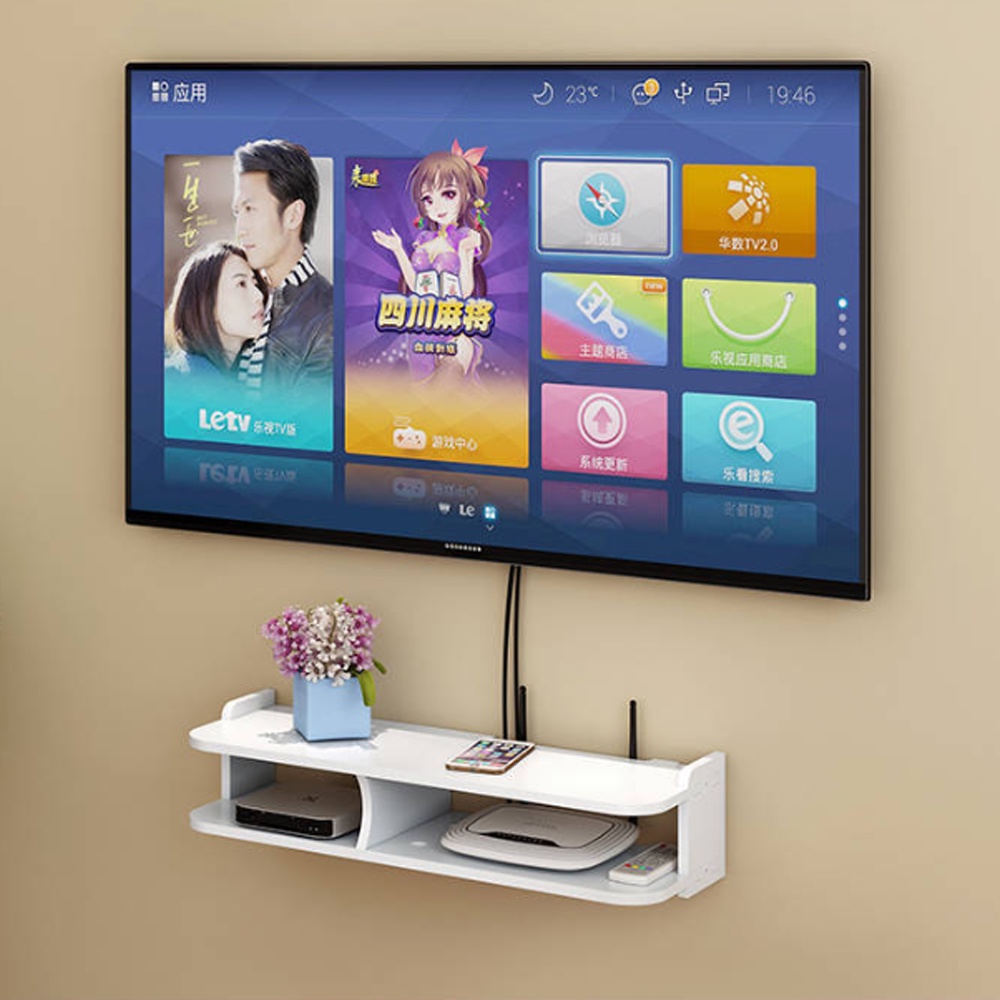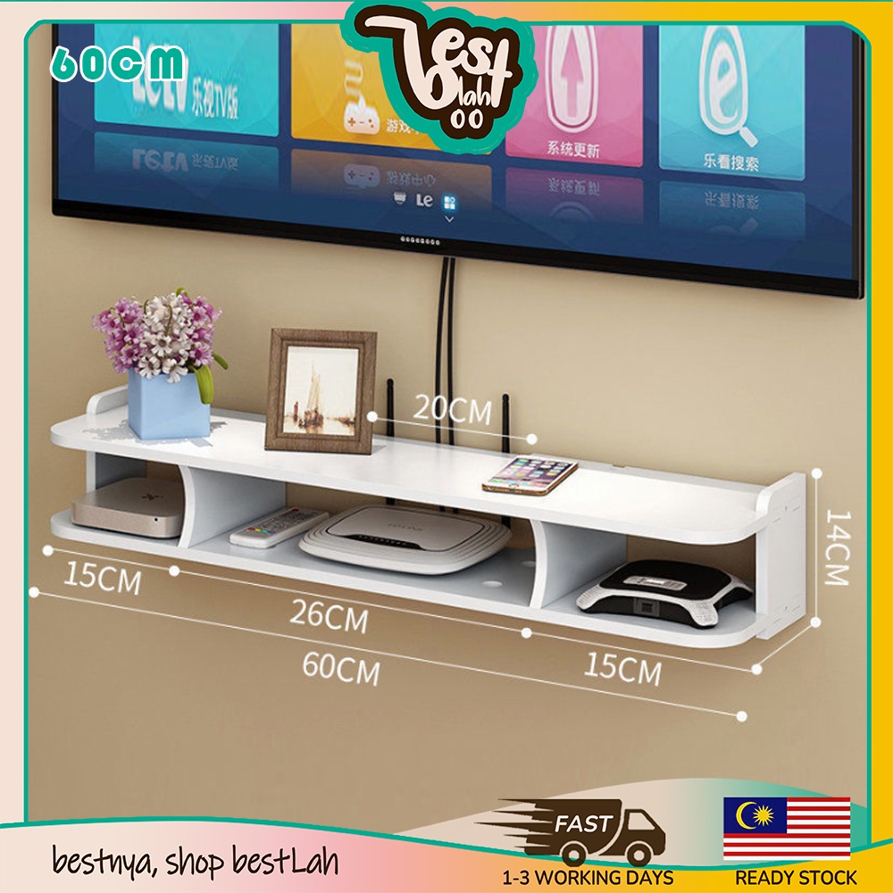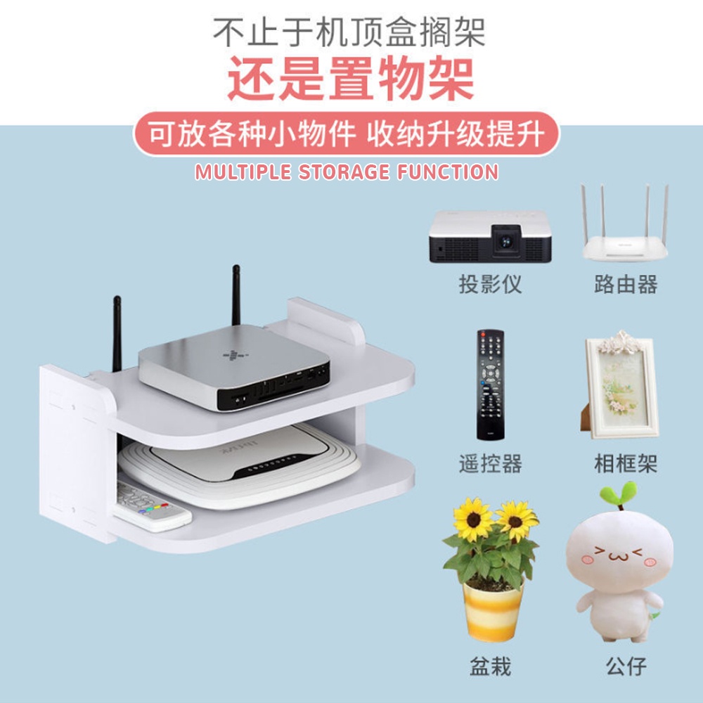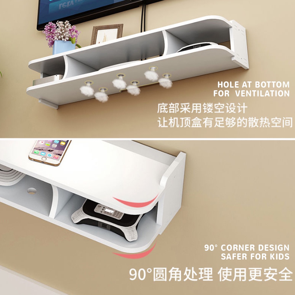 BESTLAHH Modem Router Wifi Wall Mounted Rack Shelves TV Player Floating Storage Box Living Room Shelf Organizer Remote