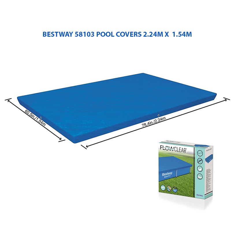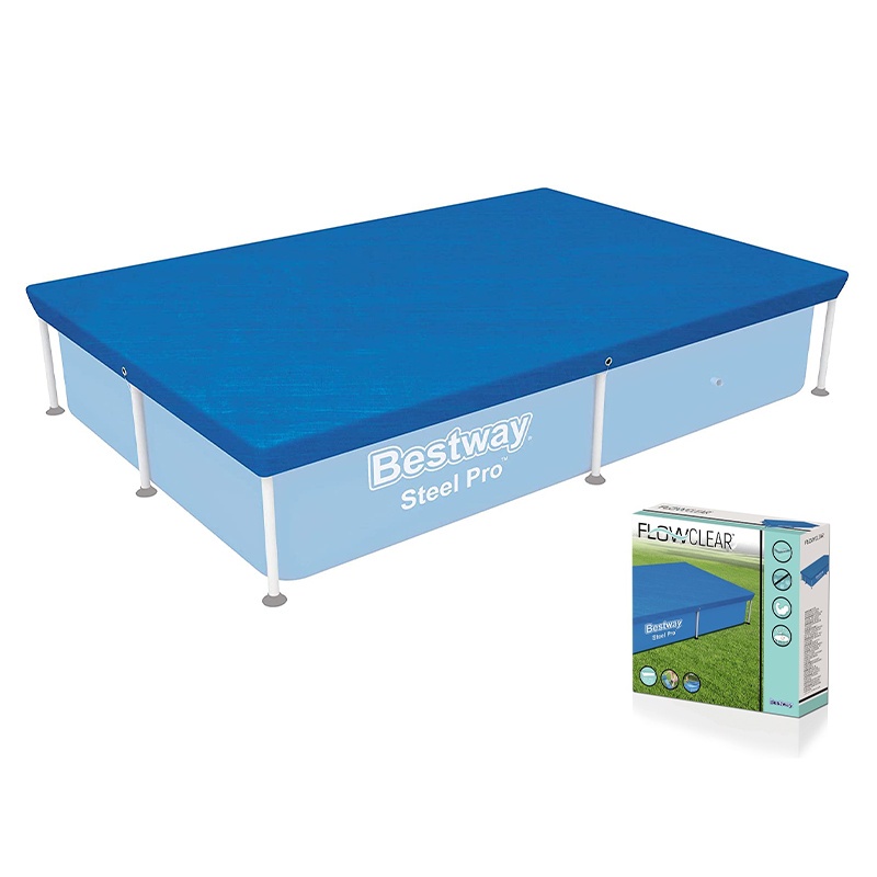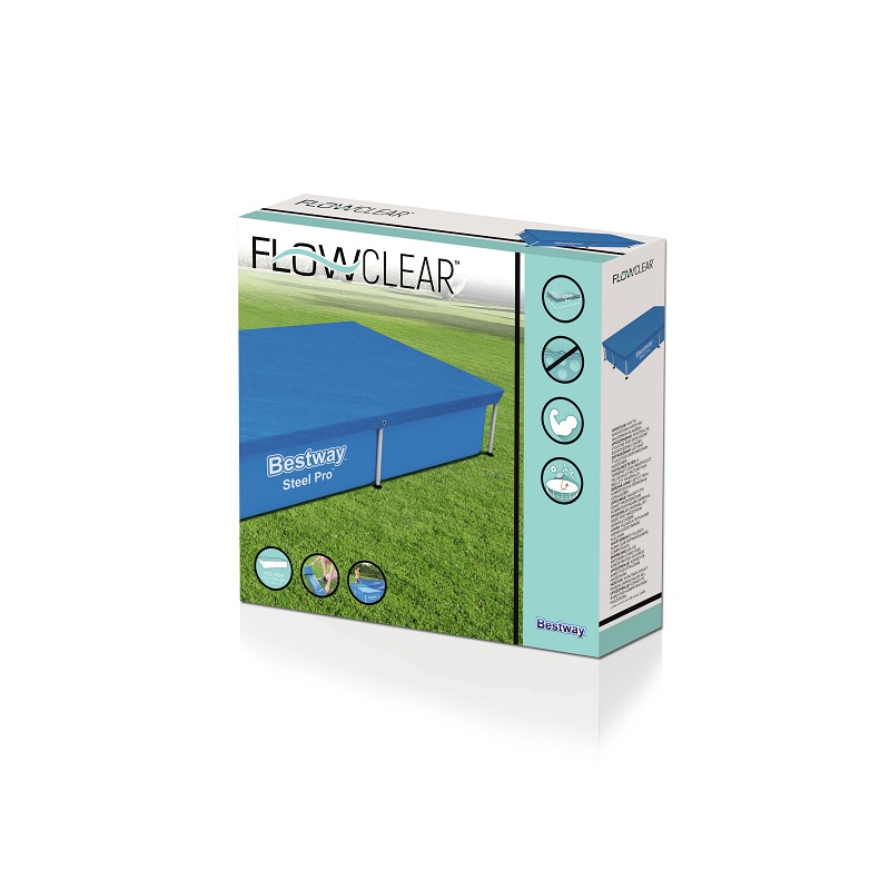 BESTWAY 58103 Swimming Pool Cover Flowclear Pro Rectangular Above Ground Swimming Pool Cover Blue