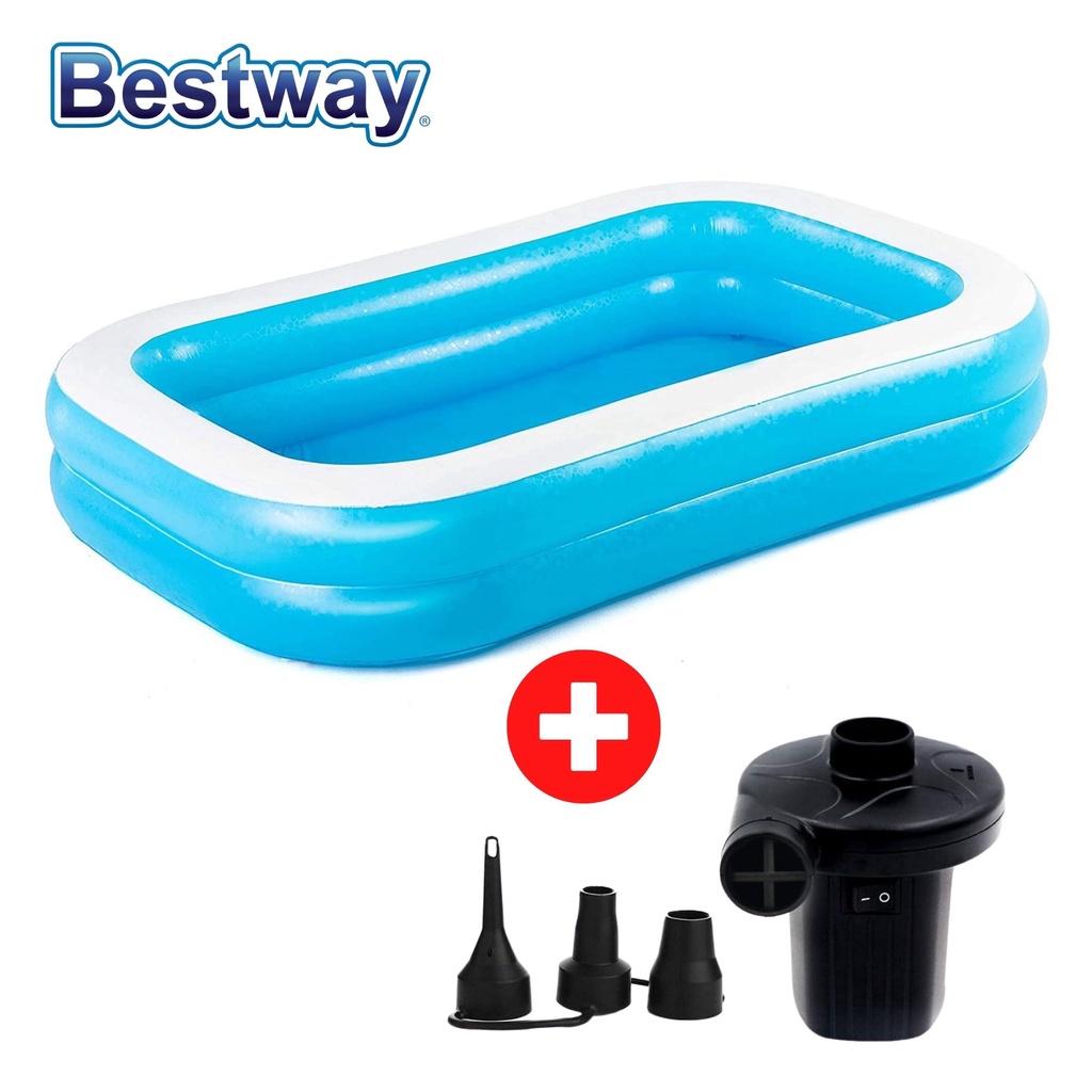 BESTWAY Pool 54006 Inflatable Swimming Pool for Kids Combo Electric Pump Kolam Renang Kanak-kanak PVC