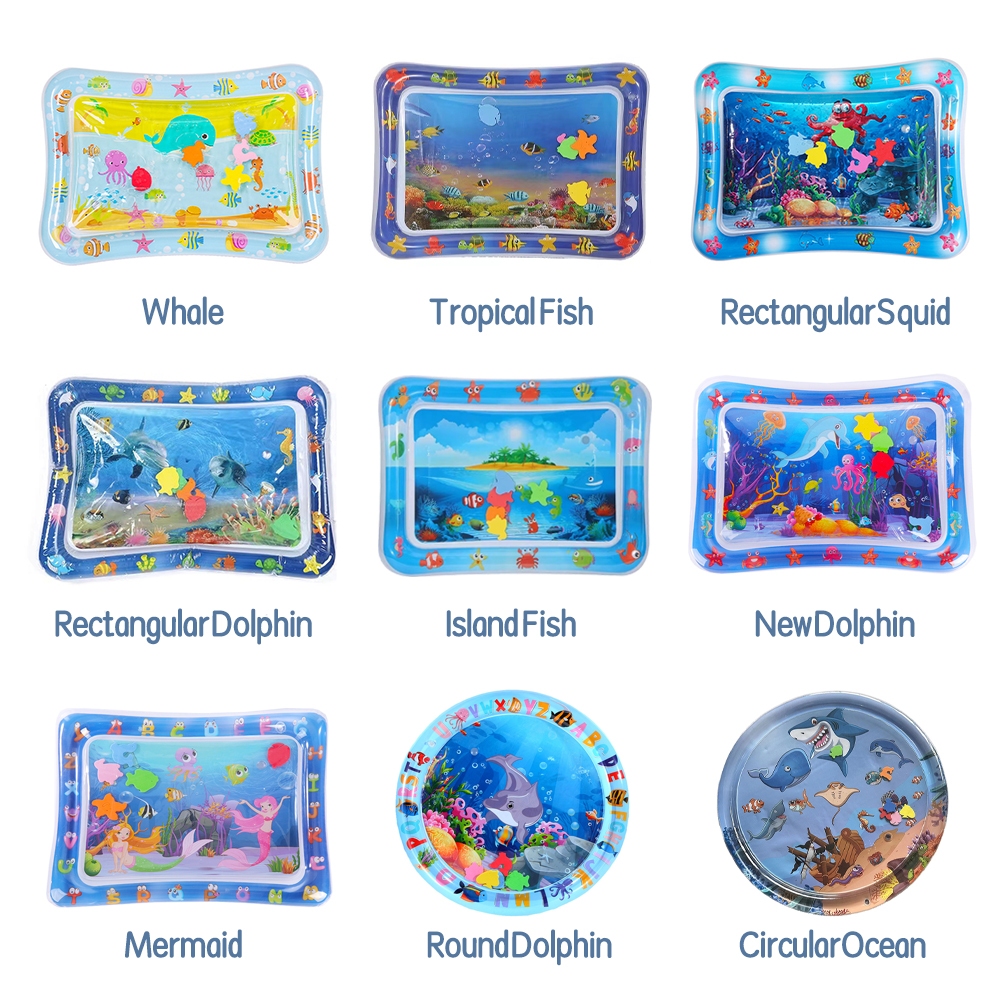 BEVAVAR Baby Crawling Mat Newborn Water Play Mat Cartoon Water Fish Ocean Shark Fun Activity Playmats Inflatable Cushion