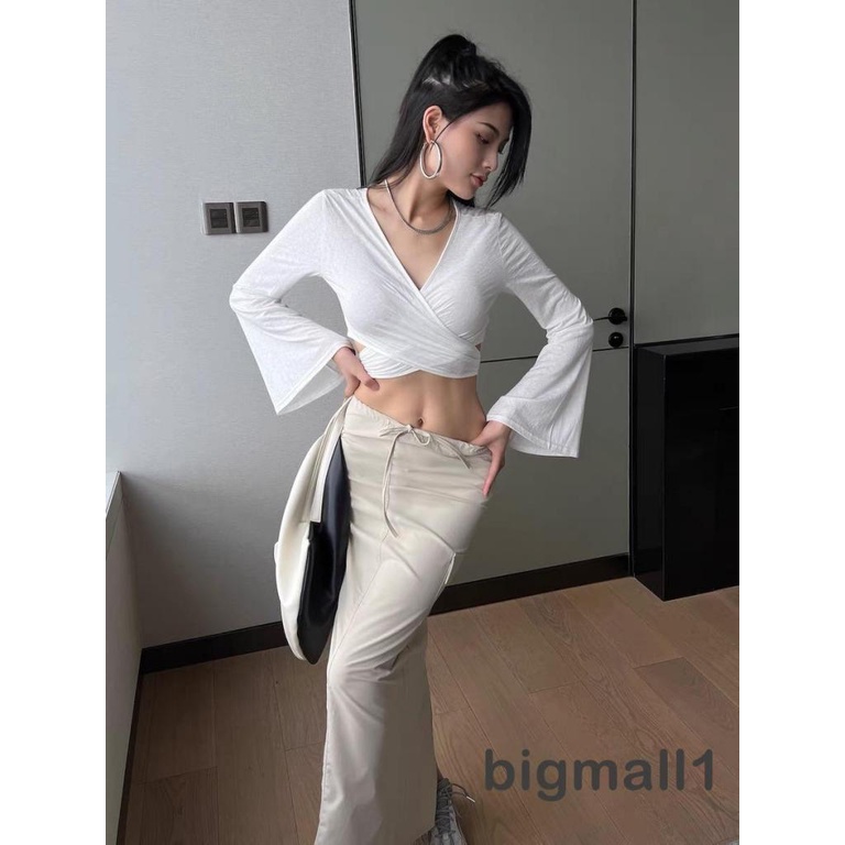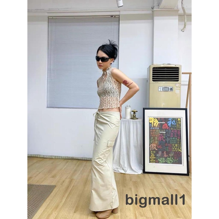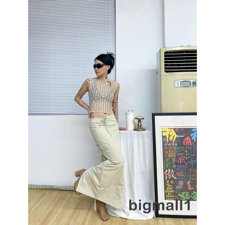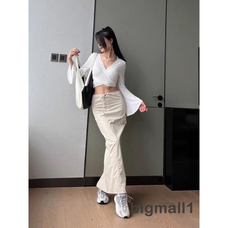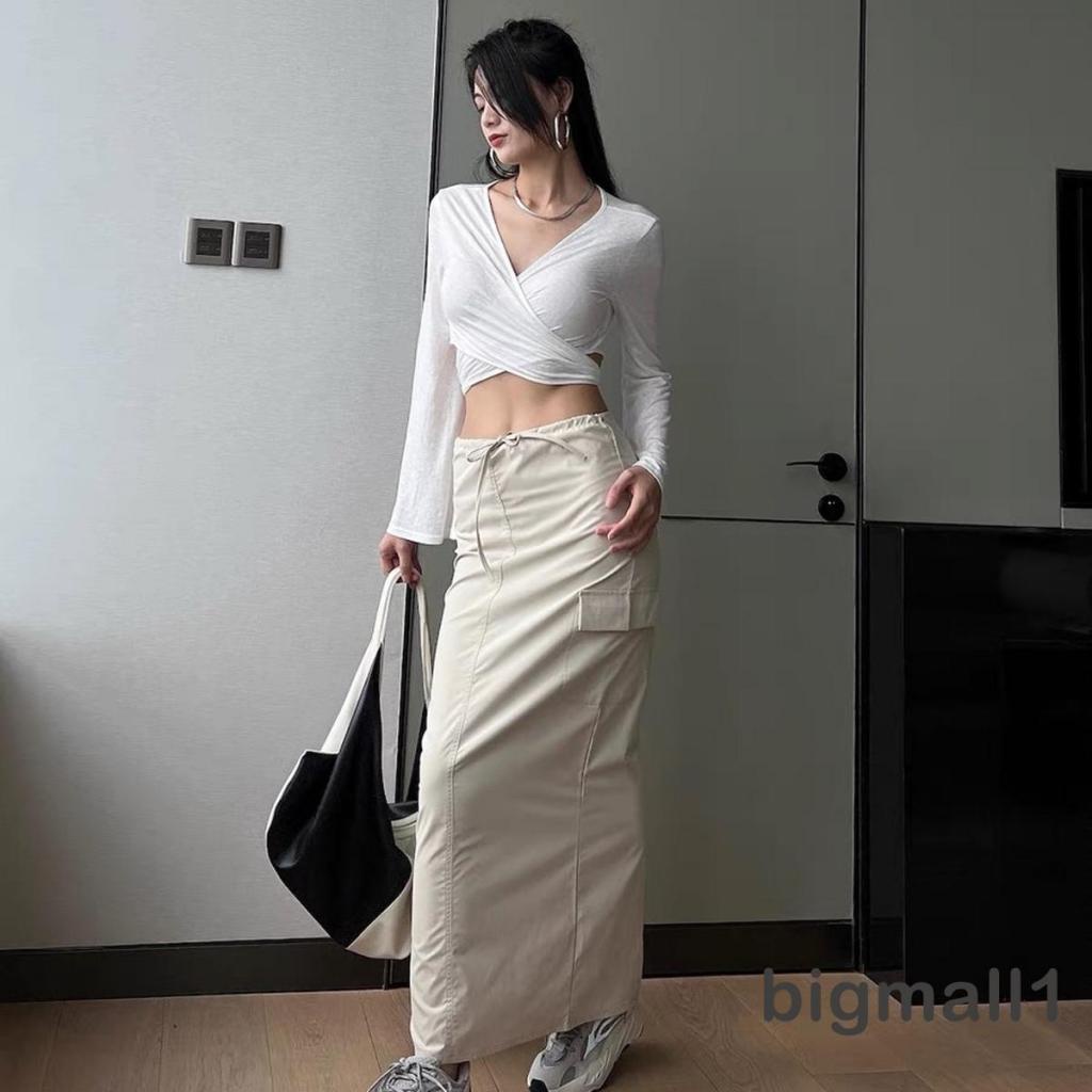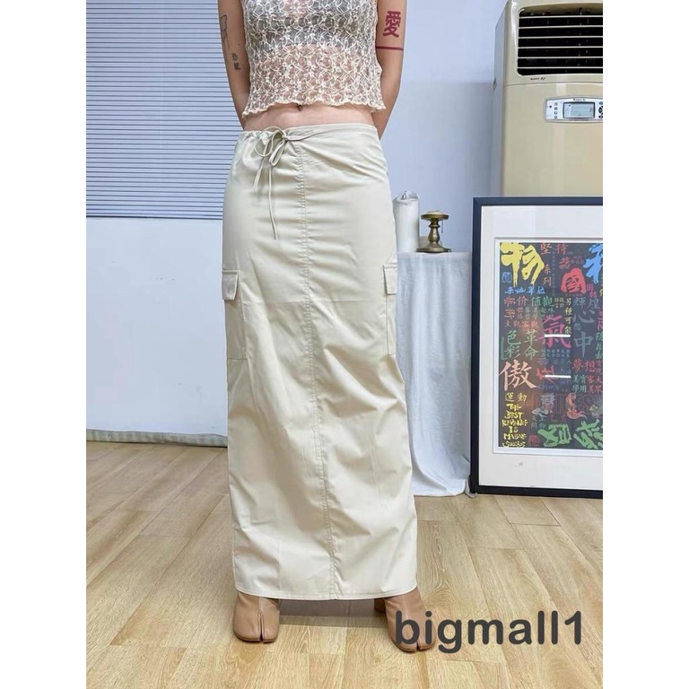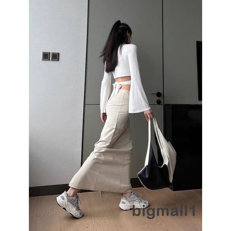 BIGMALL-Fashion Women Cargo Back Slipt Zipper Pocket Straight Long Skirt