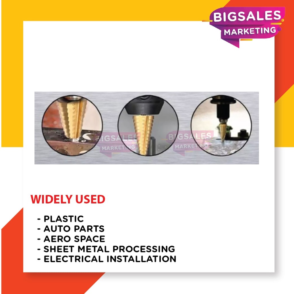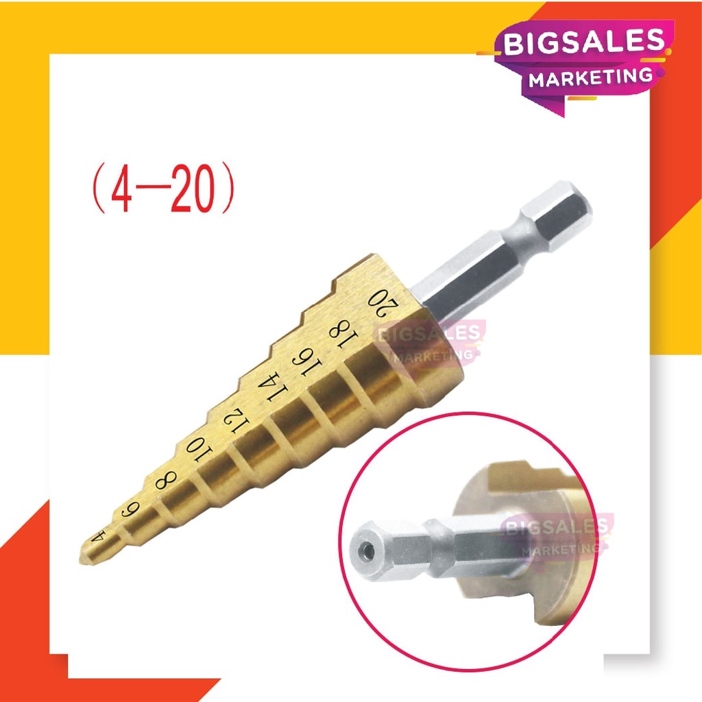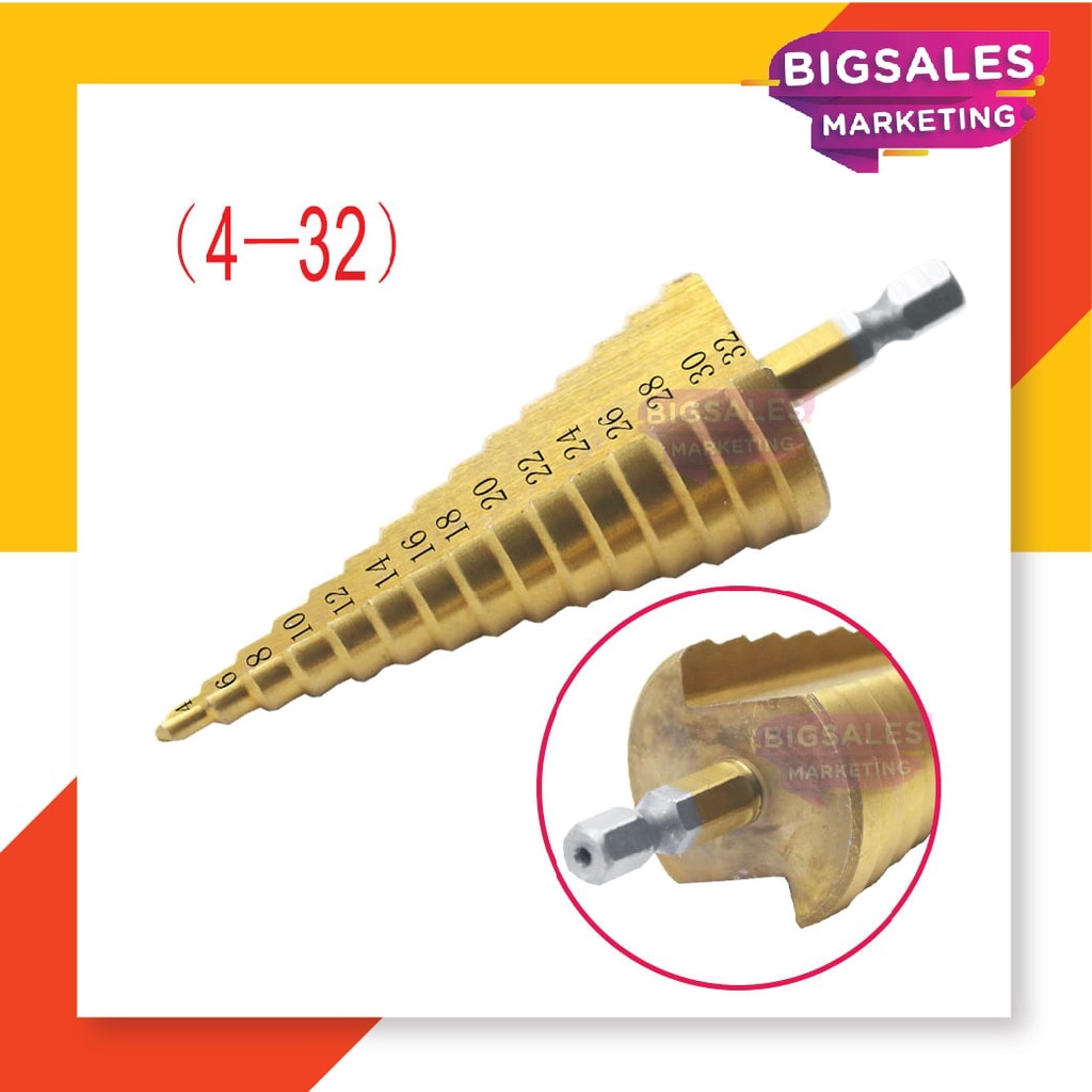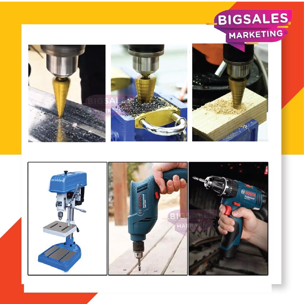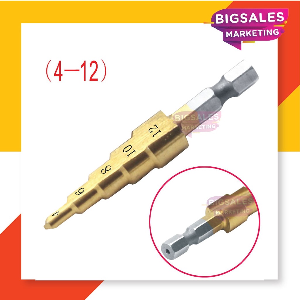 BIGSALES Hex Shank HSS Drill Bit Titanium Coated Cone Step Drill Bit set Hole Saw Cutter